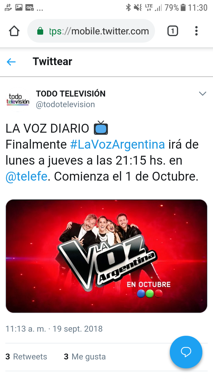Según “Primicias Ya” , “La voz Argentina” no iría los Domingos en /emoticons/default_telefe.png" title=“:telefe:” loading=“lazy”> como estaba previsto , sino que iría los Lunes a las 22.30 (Compitiendo directamente con Tinelli)