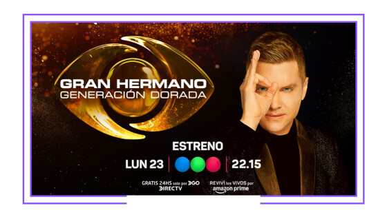Telefe anuncia el estreno de Gran Hermano: generacion dorada para el próximo lunes 23 de febrero. Al estreno en televisión abierta y en simultáneo con las señales de DIRECTV y DGO, así como con YouTube y Twitch, se le suma una colaboración con Amazon Prime Video, dónde se podrán ver bajo demanda los capítulos una vez emitidos por dicho canal.