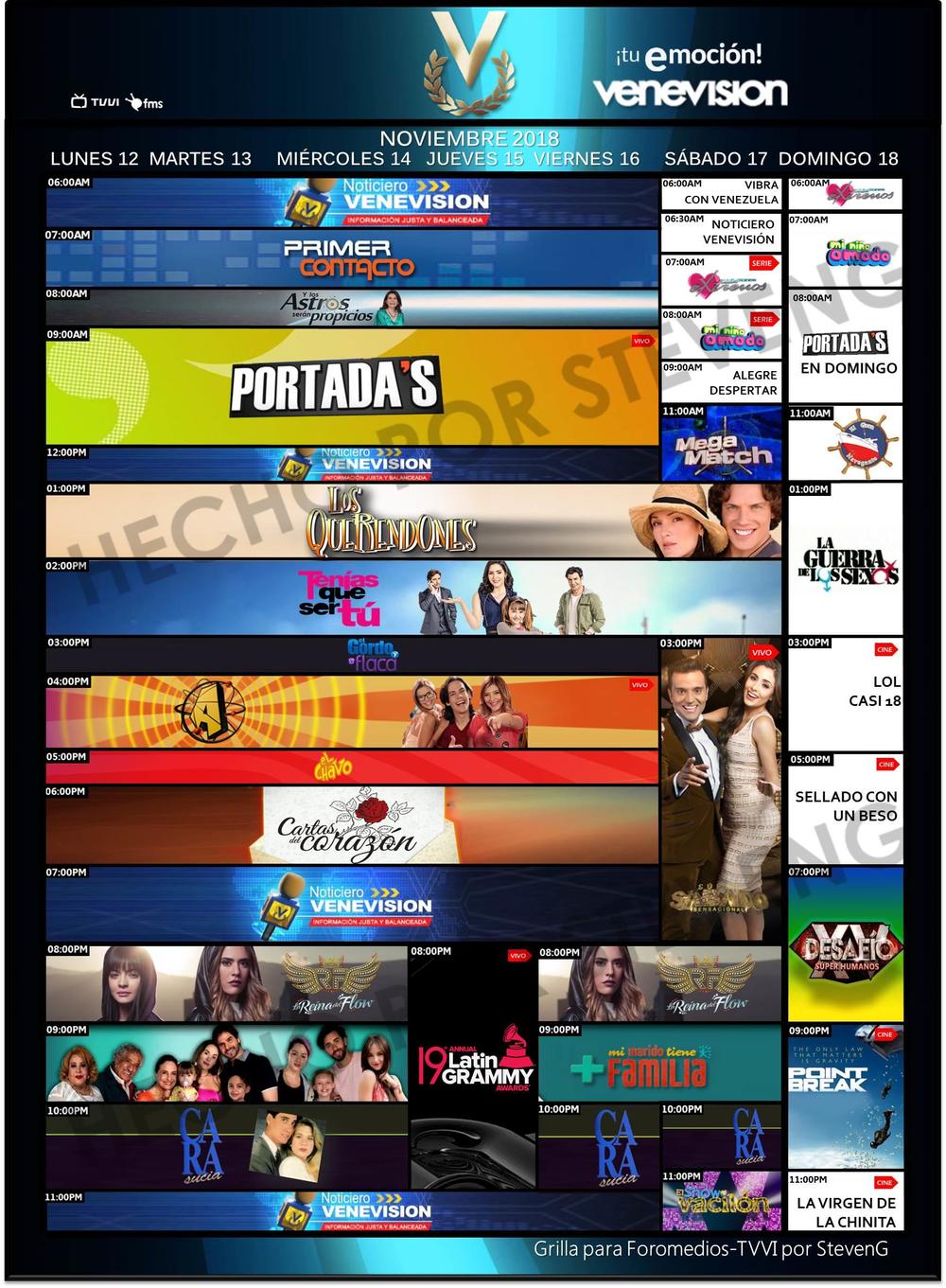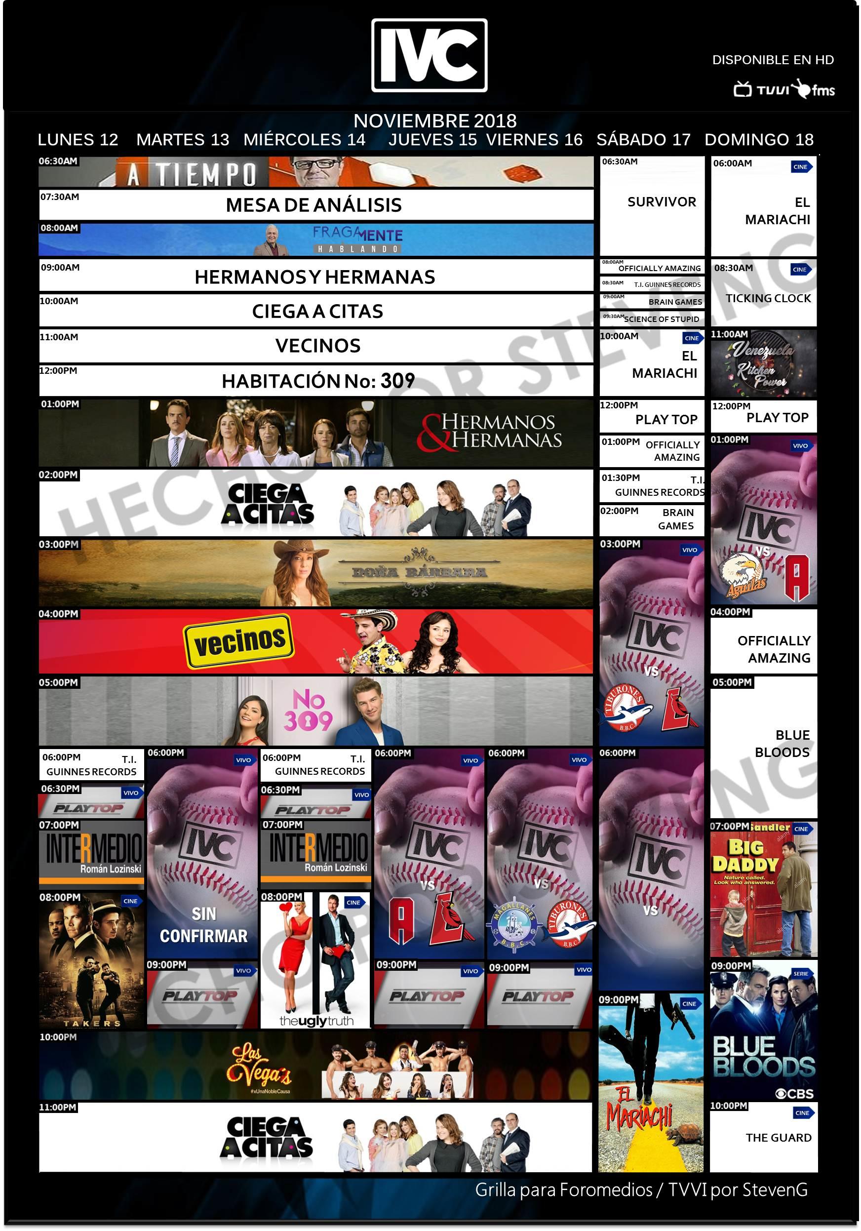 **Parrillas de Programación (Venevisión, Televen, Venevisión Plus, IVC Networks) del Lunes 12 al domingo 18 de noviembre de 2018