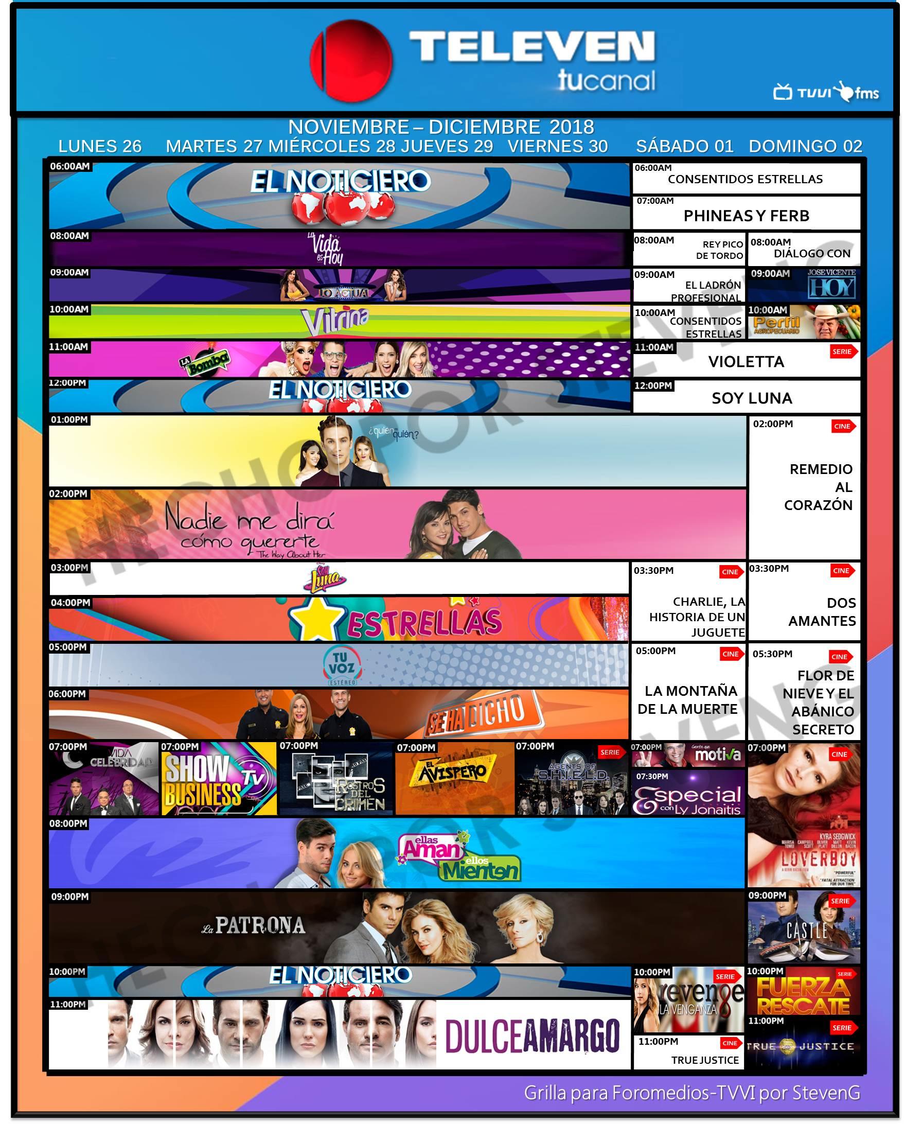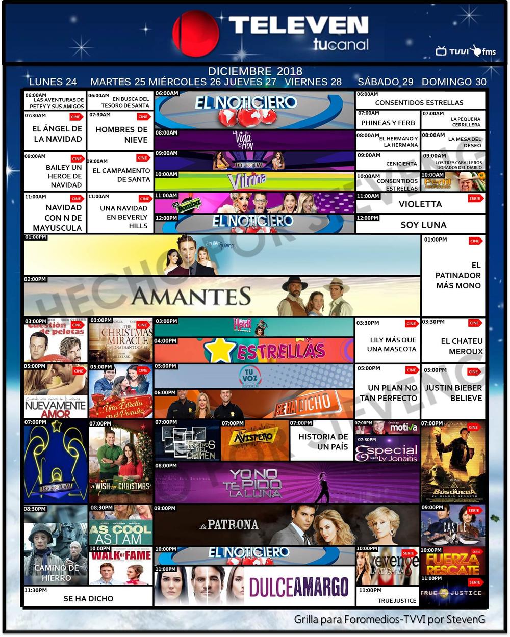 **Grillas de programación (Venevisión, Televen) de la semana del 23 al 30 de diciembre de 2018.**