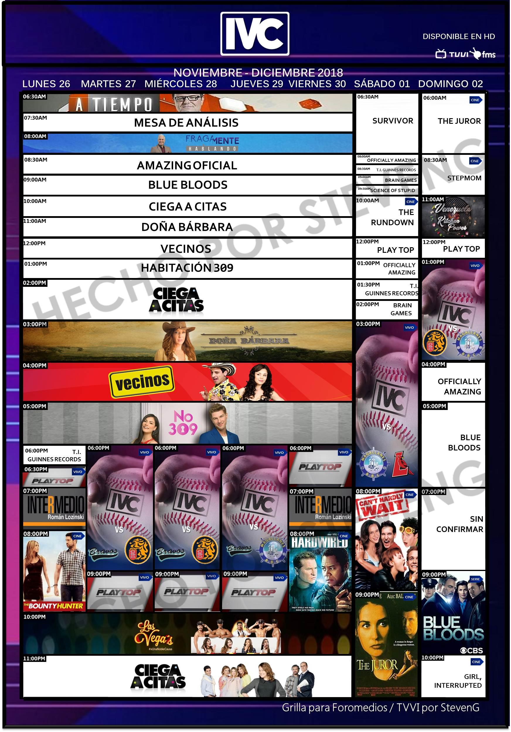 Grillas de programación (Venevisión, Televen, Venevisión Plus y IVC Networks) de la semana del 17 al 23 de diciembre de 2018.