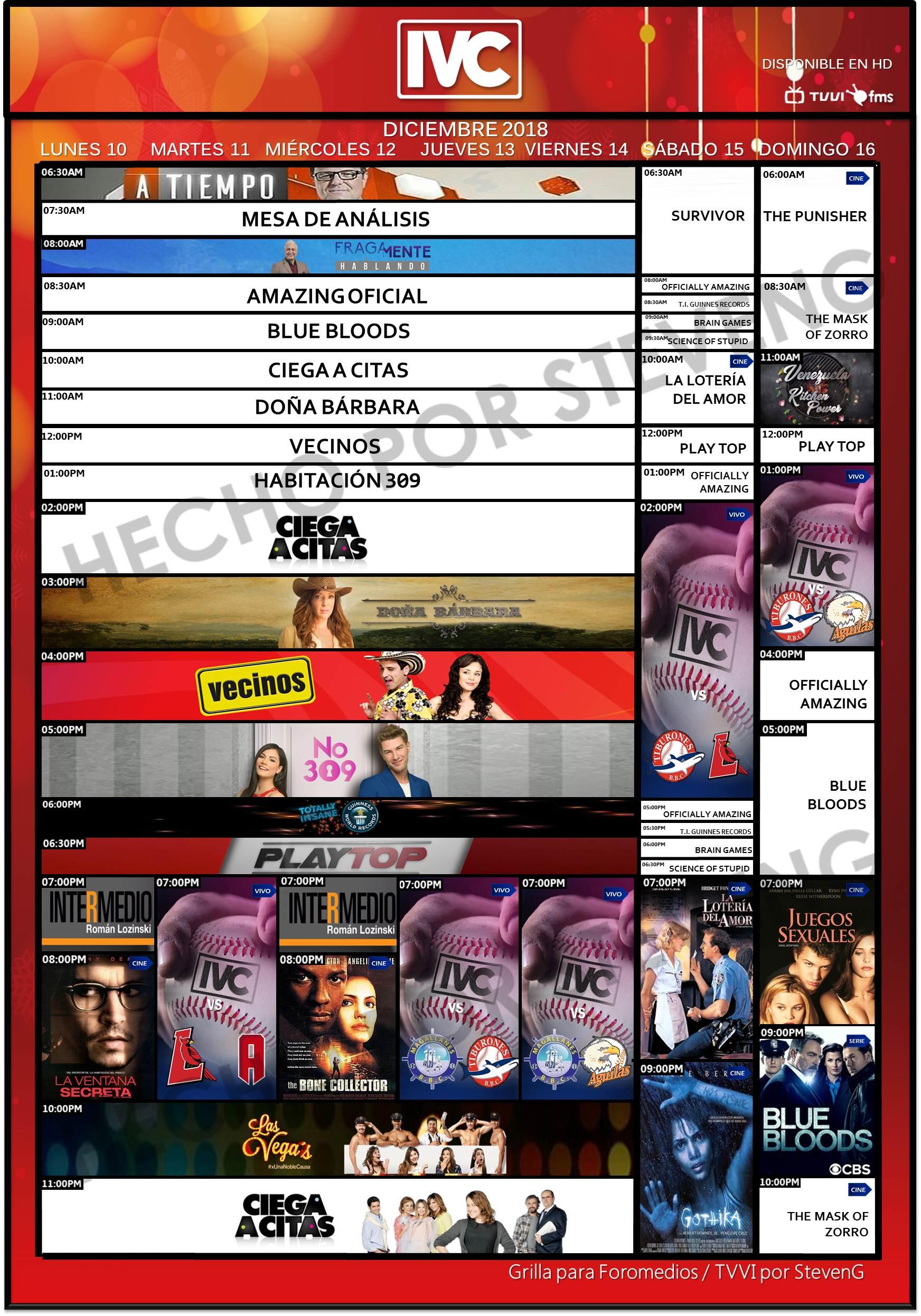 Grilla de programación (Venevisión, Televen, Venevisión Plus y IVC Networks) de la semana del 10 al 16 de diciembre de 2018.