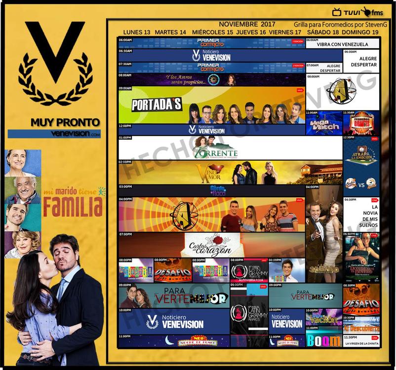 Parrilla de Programación (Venevisión, Televen, Venevisión Plus, Telemundo Internacional Vzla, IVC, Venevisión USA) del Lunes 13 al domingo 19 de noviembre de 2017