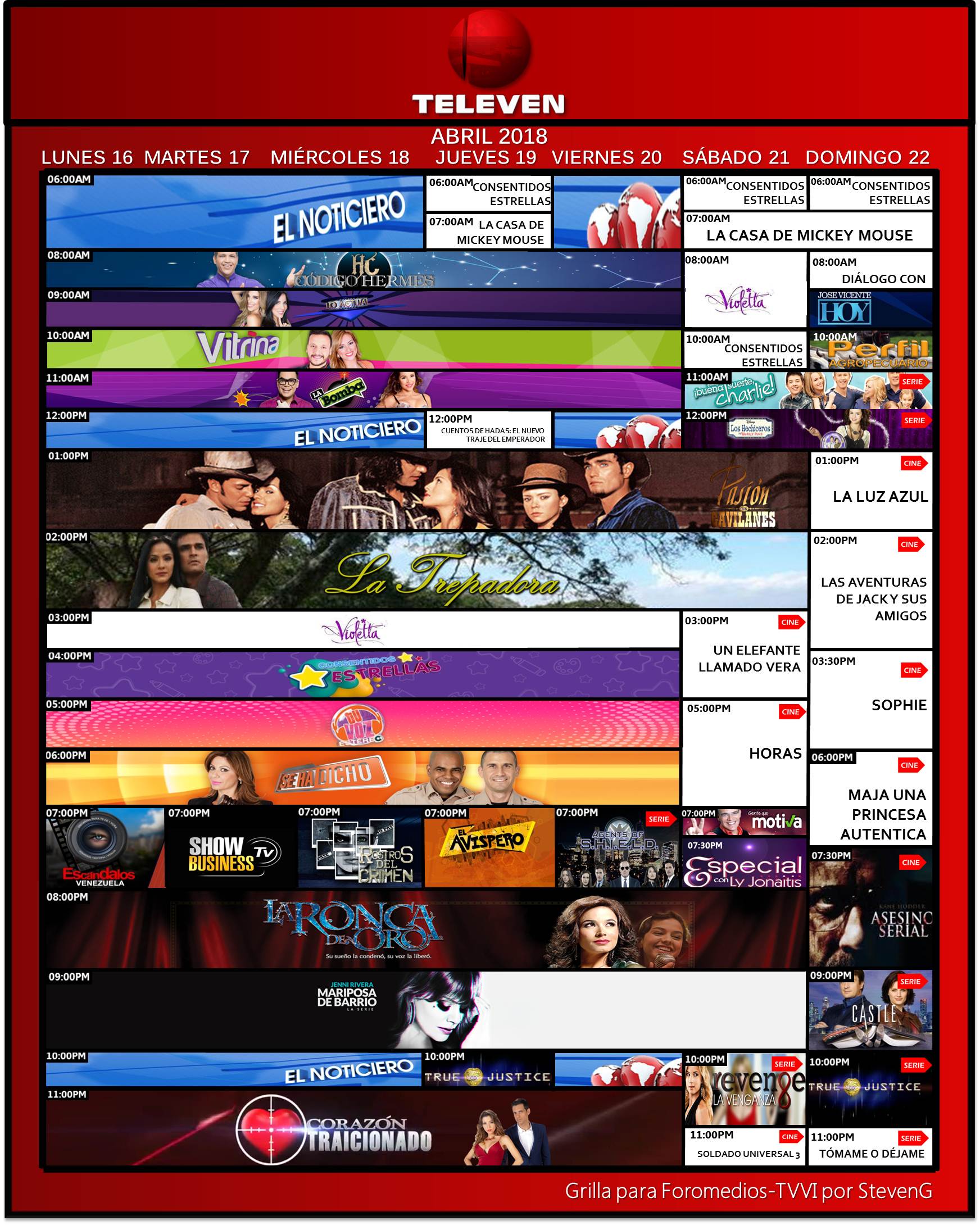 [](https://cdn.storage.foromedios.com/monthly_2018_03/5abd5e425774f_GrillaVenevisinMarzo012018.jpg.e8e9db21d5ec12747490a3700e9b0d7f.jpg)[](https://cdn.storage.foromedios.com/monthly_2018_03/5abd5b896b22d_GrillaTelevenMarzo012018.jpg.74bf4b747e0c1f59fb8389bb9008d9c7.jpg)
