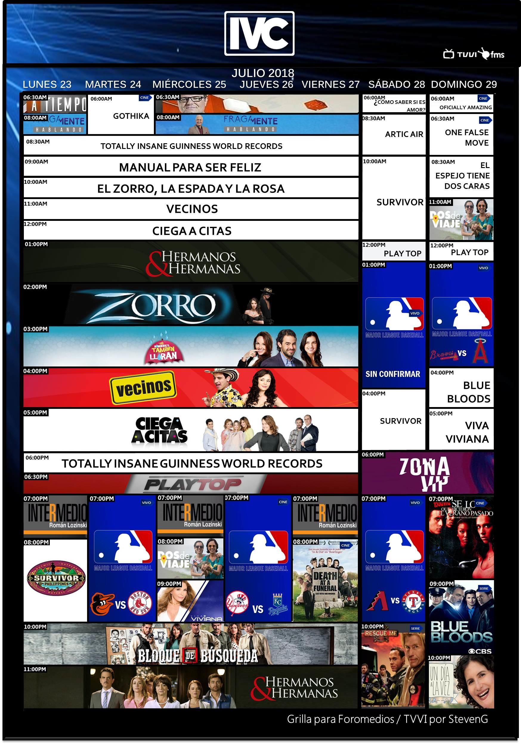 **Parrilla de Programación (Venevisión, Televen, Venevisión Plus, Telemundo Internacional Vzla, IVC, Ve Plus) del Lunes 23 al domingo 29 de julio de 2018