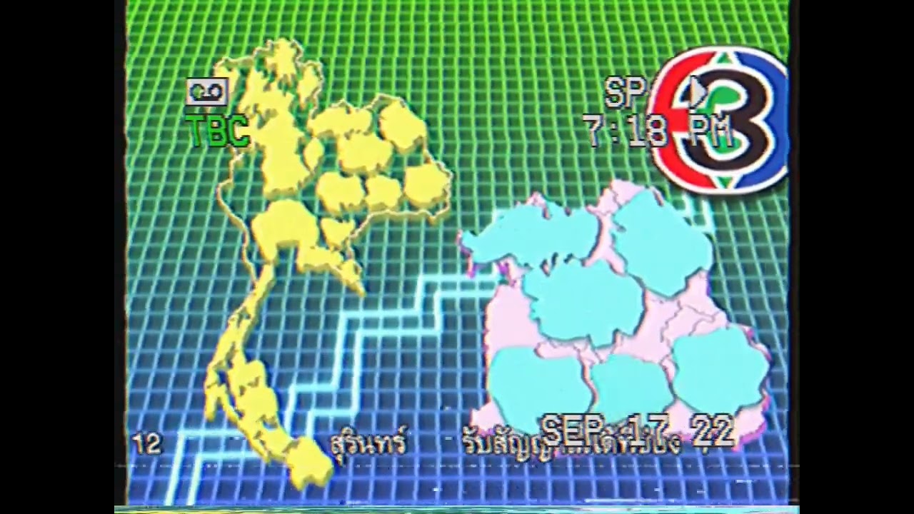 Ahora vamos a Tailandia con el cierre de emisiones del Canal 7 (ช่อง 7), emitido en 1985 (o 2528 de acuerdo al calendario budista). Aparece el mapa del país junto al nombre de las diversas ciudades: