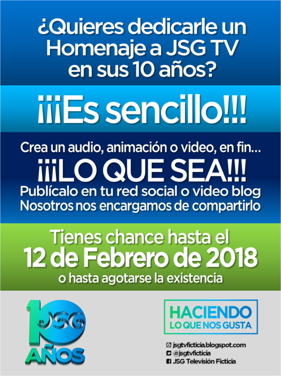 Tal día como hoy, 12 de febrero de 2007, sale oficialmente desde Maracay Edo. Aragua y a través del Canal 14 UHF la pionera de la Televisión Ficticia en Venezuela: JSG Televisión. Hoy celebra su primera década en el aire con una nueva cronología de todos los logotipos que han pasado por este canal.