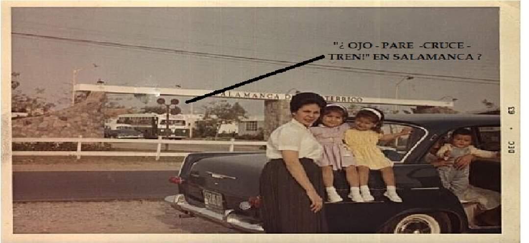 Debuto en el tema con esta fotazo, de diciembre de 1963 en Salamanca de Monterrico, en donde aún pasaba frente a su arco de entrada la línea del ferrocarril Lima - Lurín, por lo que se puede ver ese anuncio de ojo, pare, cruce, ¡Tren! allí. Lastimosamente, dejó de existir al año siguiente. Agradecimientos a Lima: De las antiguas haciendas al desarrollo urbano.