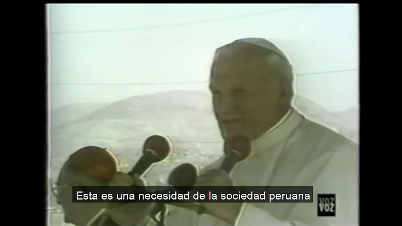 Voy a Villa el Salvador, cuando el 5 de Febrero de 1985 llegó el** Papa Juan Pablo II** a realizar una visita en donde hoy es el Parque Industrial. Vemos imágenes y fragmentos del video de la ceremonia en donde acudieron una gran cantidad de personas. Además, meses después se colocó una piedra en donde el Papa estuvo, y actualmente es una capilla que alberga dicho monumento.