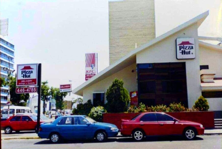Sumando un poco a lo contado por , comparto esta foto publicada en FB, es el local de Pizza Hut de Camacho en La Molina. La foto habrá sido tomada entre 1996 y 1999.