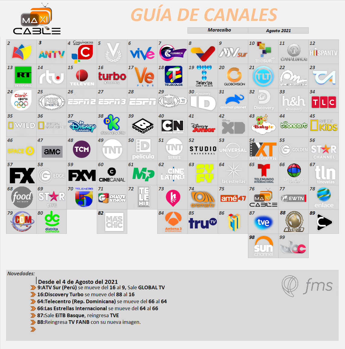 Espero que les guste esta grilla de canales de Maxicable Maracaibo en Agosto 2021, Gracias a Juan Sebastian Gonzalez por las novedades