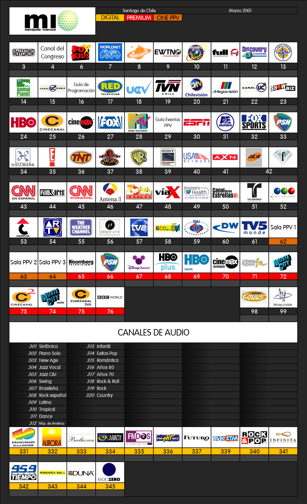 Es asombroso ver como VTR y Metropolis contrastaban en canales, mientras MI tenía PSN, VTR se juraba el hoyo del queque con ESPN+ y el canal Chilefilms que salía por el canal de servicios.