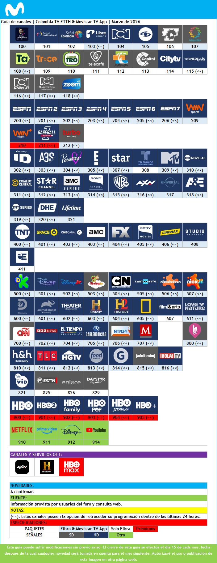 Movistar TV Colombia - Guía de canales (Marzo de 2026)