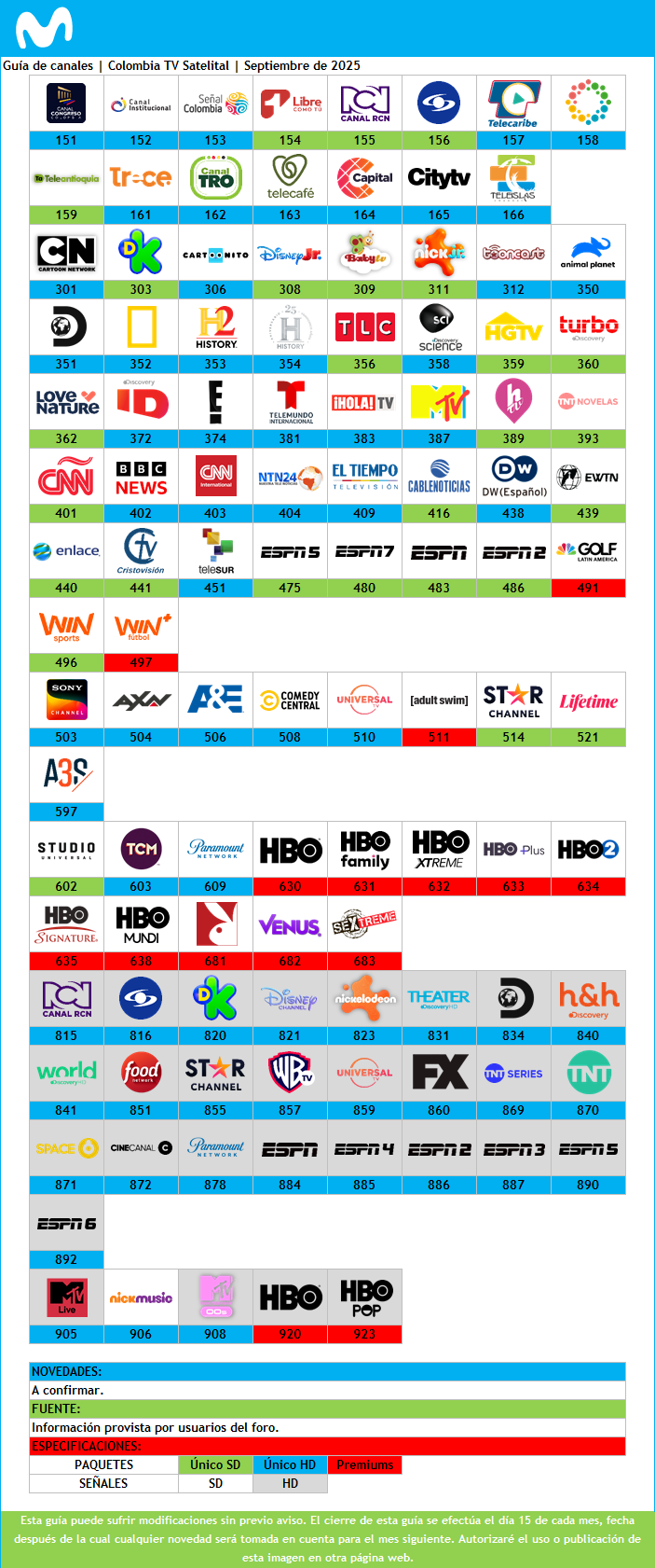 Movistar TV Colombia - Guía de canales (Octubre de 2025)