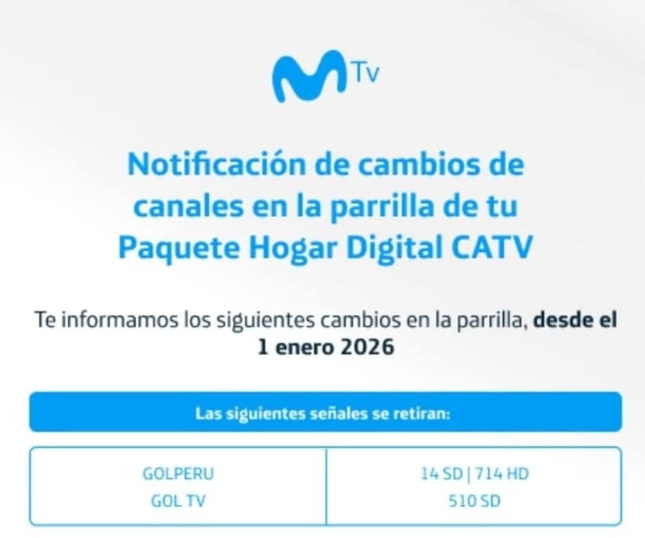 Yo también envié correo por redes sociales de Movistar Perú principalmente en Messenger de Meta y WhatsApp y a mi si me contestaron q estaban actualizando los canales y q muy pronto avisarán la nueva grilla de canales 2026 de Movistar lo avisarán por el correo de cada