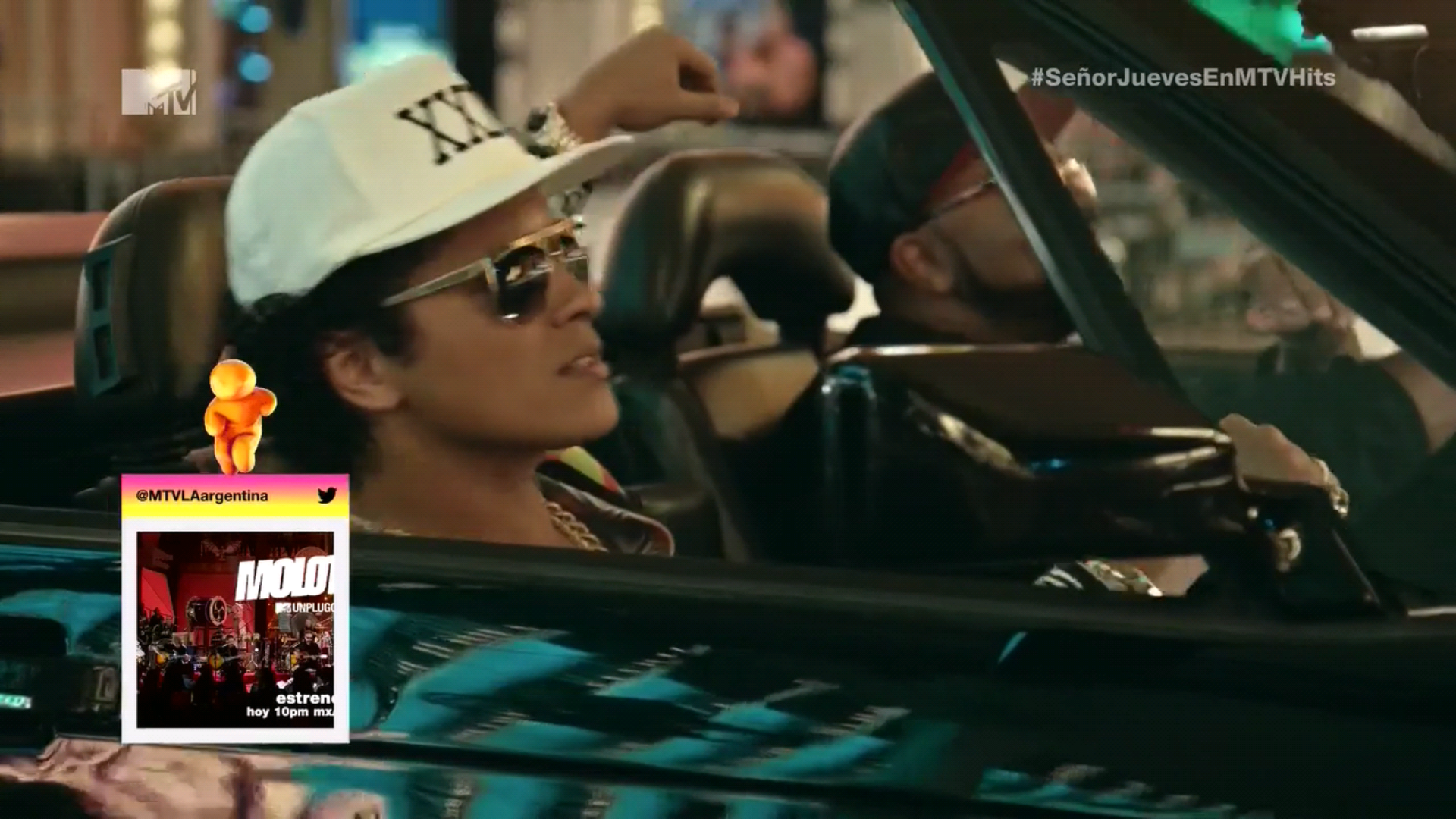 estoy viendo el programa mtv hits y estan pasando imagenes de sus redes sociales abajo a la izquierda en lugar de la hora y temperatura, es una “gomita” de las graficas del programa arriba de una foto de michael jackson (por un bloque que dieron) sacada de twitter, y despues dieron otra de la misma “gomita” arriba de una promo del mtv unplugged molotov sacada de facebook