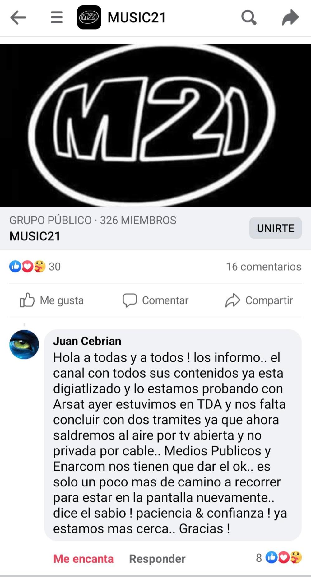 Music21 se encontraba realizando los trámites en el Registro Público de Señales de ENACOM para ingresar a la TDA como SEÑAL NACIONAL.