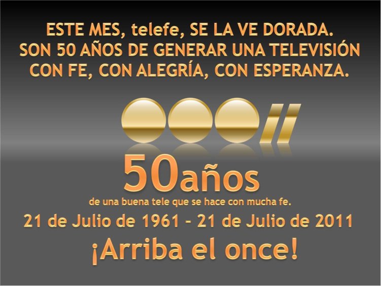 lo que cambié era cómo decirlo a TELEFE al cumplir su cincuentenario. Se la Ve Dorada, denota que está cumpliendo cincuenta años. ![]()