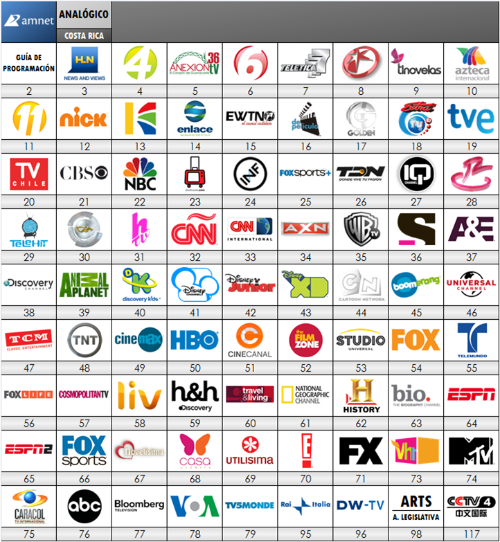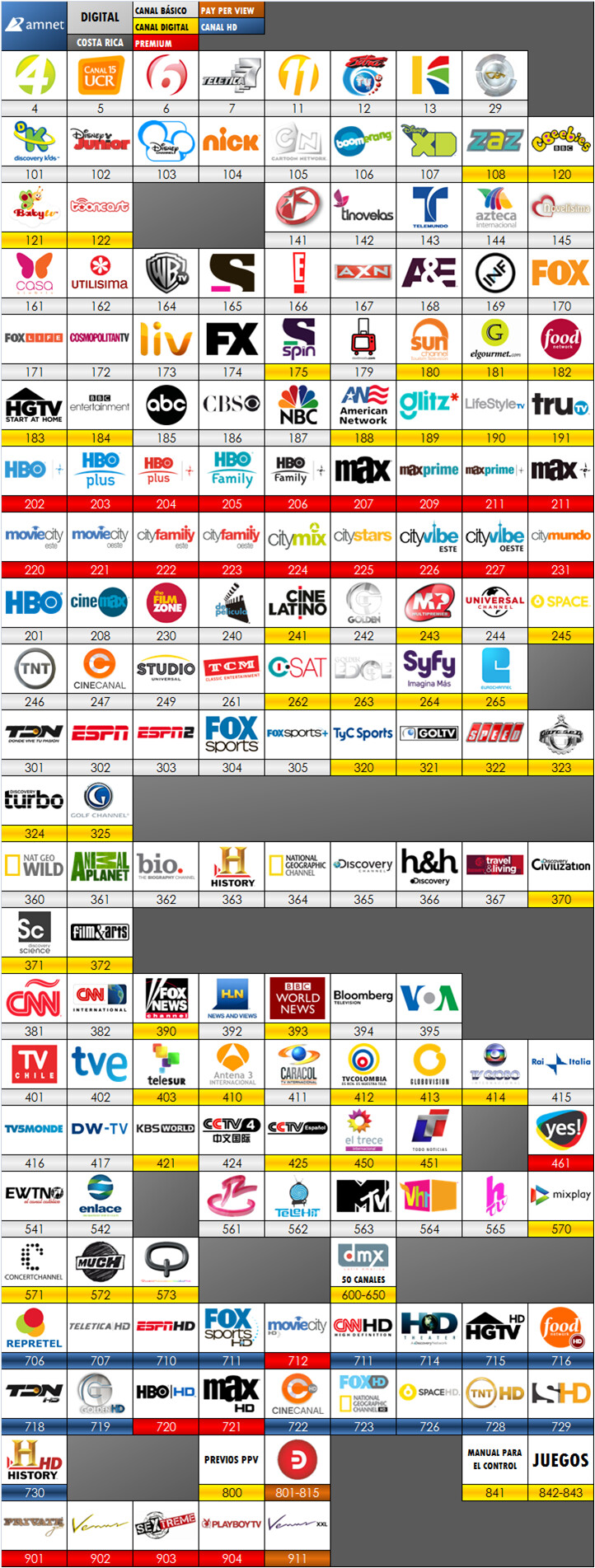 Dejo a disposición de los grilleros el siguiente enlace para que algún grillero como mundial14ven o Masterhand diseñe la nueva lista de canales de Amnet Tigo en Costa Rica, que a mi juicio es bastante completa a diferencia de otros cables de Centroamérica.
