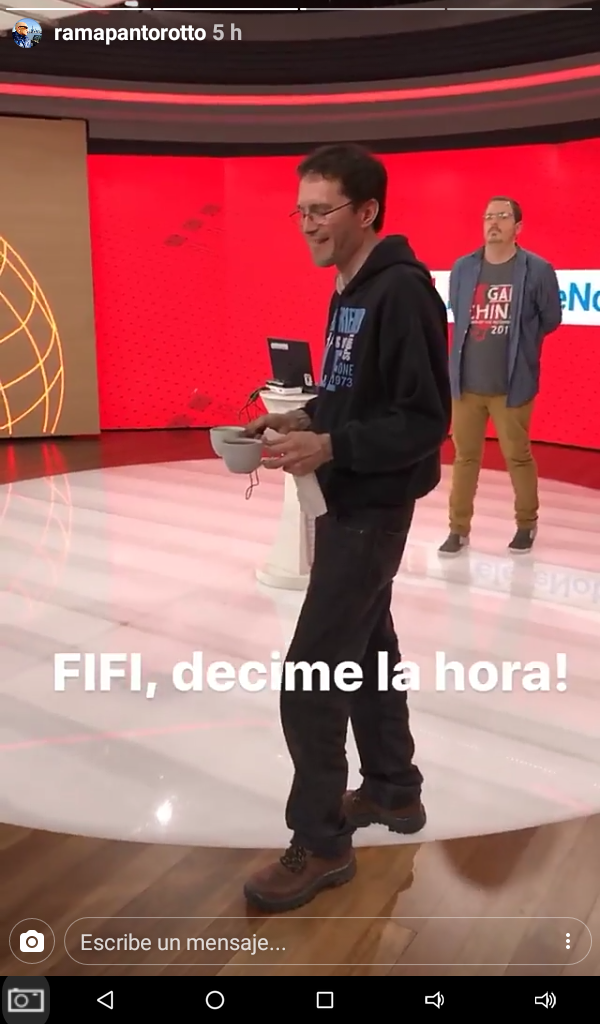 Siguen los ensayos en el nuevo estudio. En la primer imagen vemos la nueva dupla de la mañana: Adrián Puente y Martina Soto Pose.
