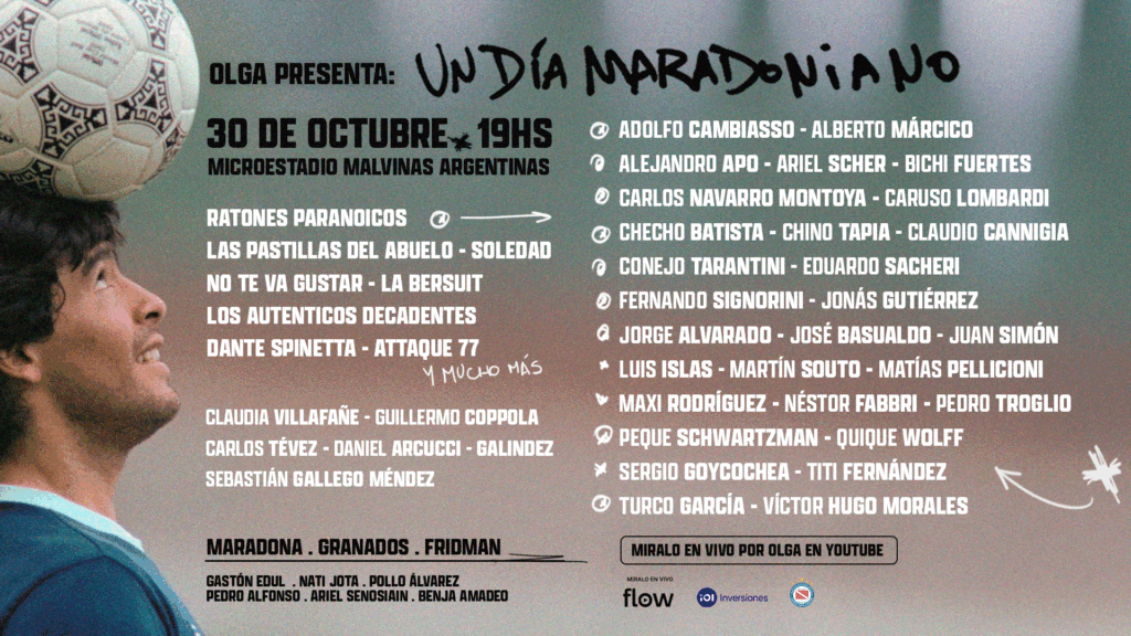 Para ampliar el tema de este post, este jueves también emitirán Un Día Maradoniano en dúplex con Olga, nuevamente por el Canal 605.