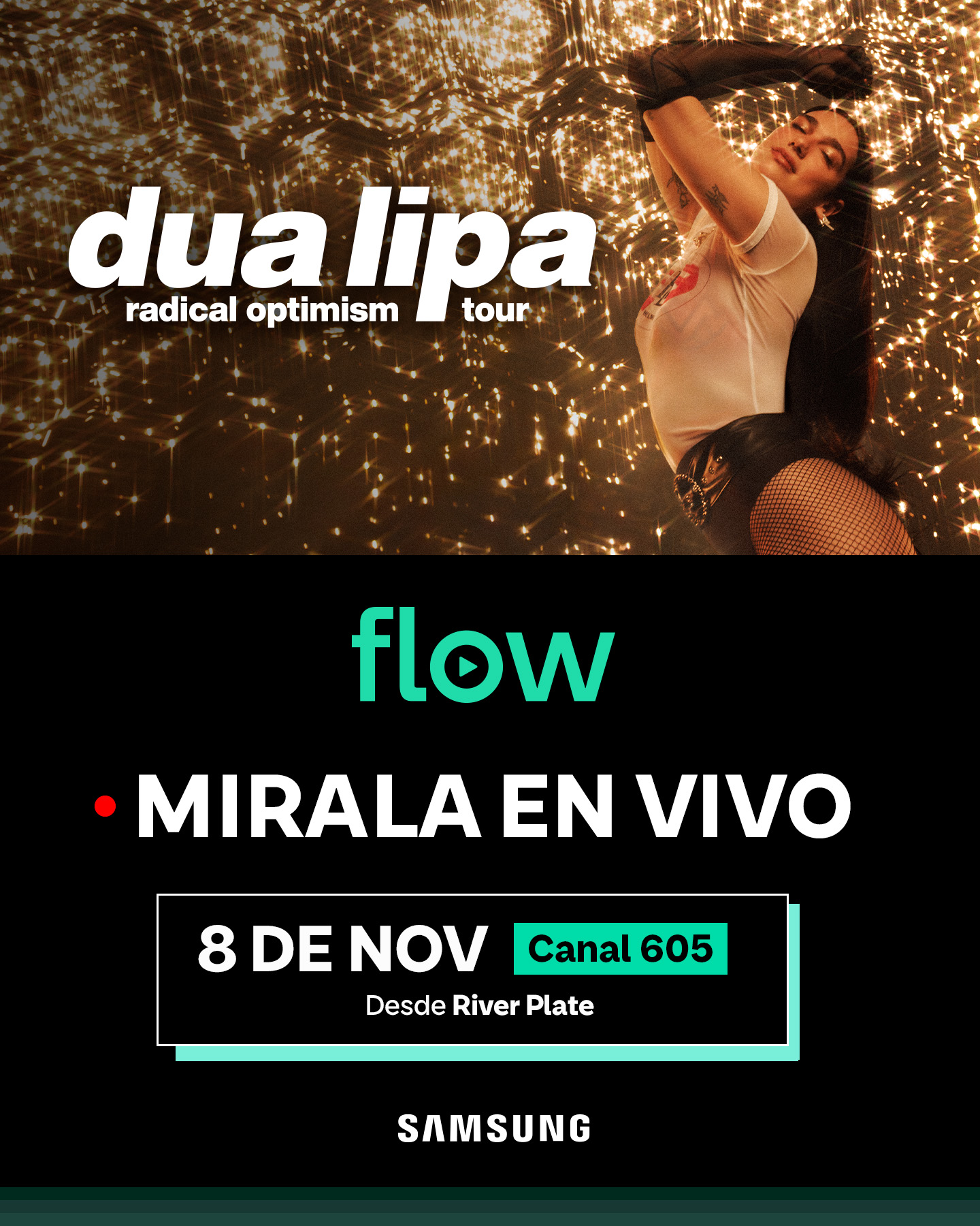 El sábado 8 de noviembre, Flow transmitirá en exclusiva el segundo show de Dua Lipa desde River Plate. Disponible en territorio argentino, paraguayo y uruguayo.