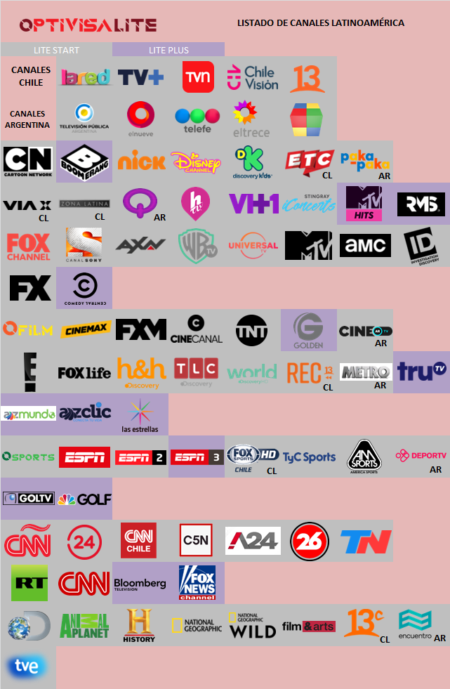 Lite Start: Canales Nacionales + 48 Canales de Televisión - Lite Plus: Lite Start + 14 Canales adicionales