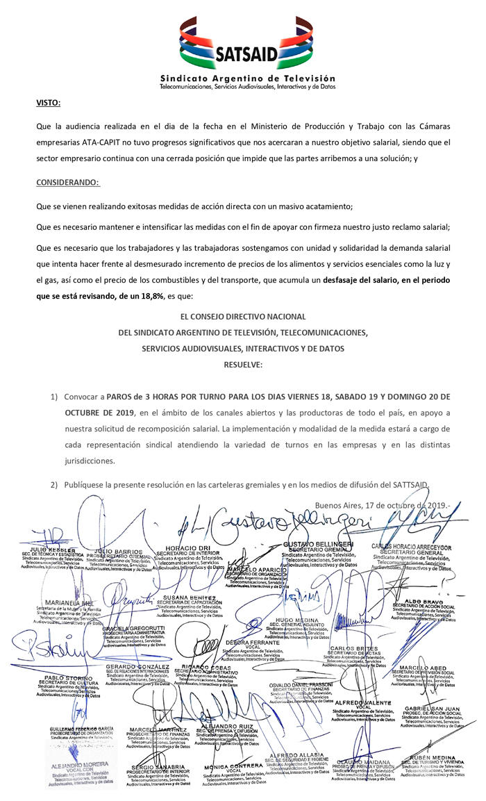 Otra vez el SatSaid va al paro, la metodología es la misma que la semana pasada, es decir, 3hs por turno pero esta vuelta serán 3 días (desde mañana hasta el domingo)