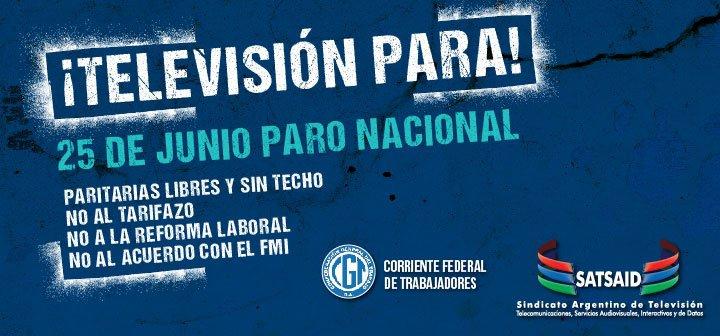 El proximo Lunes 25 , con motivo del paro general de la CGT , los trabajadores del SATSAID decidieron adherirse por lo que se vera afectada la programacion de los canales