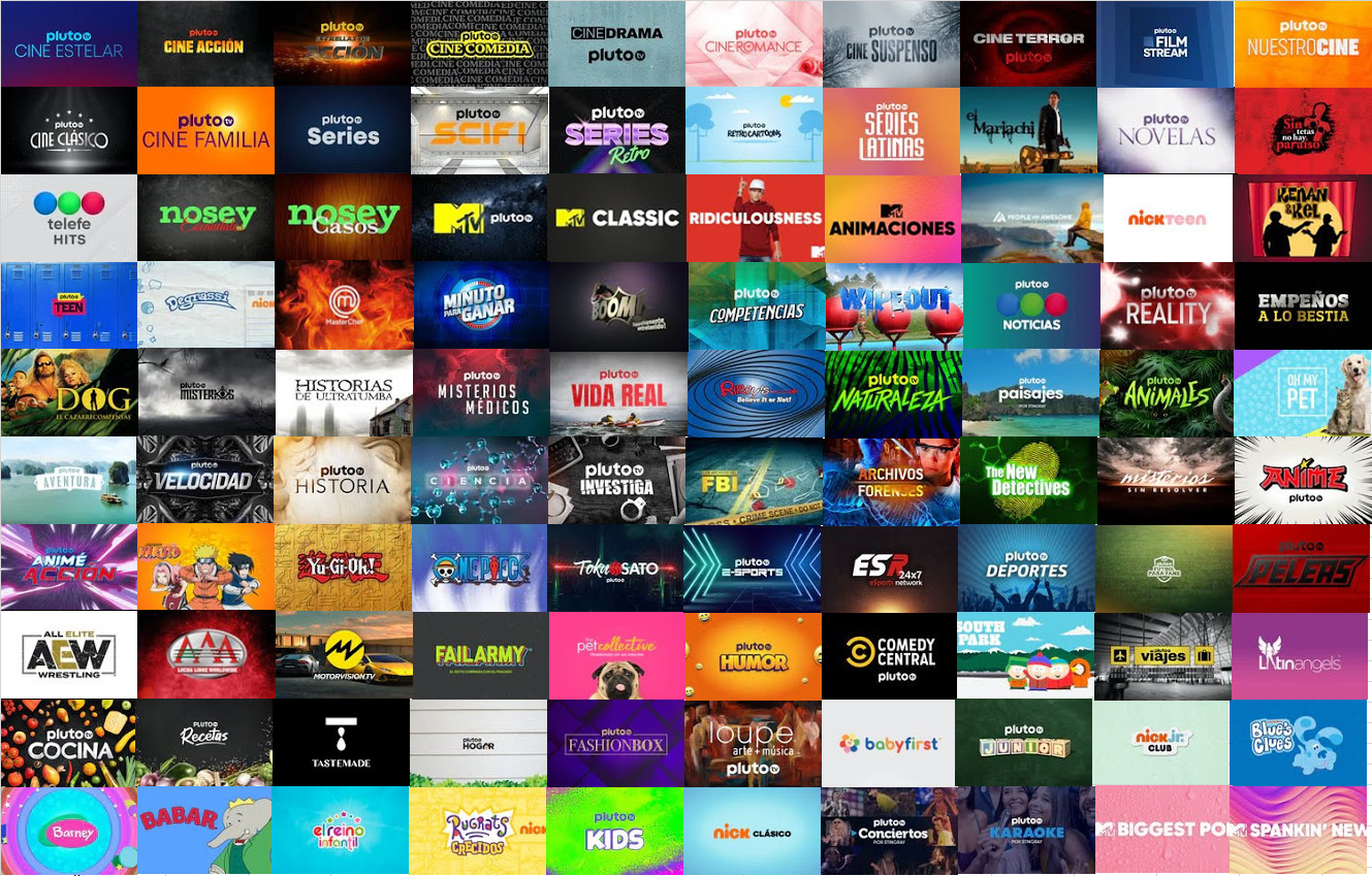 Pluto TV cuenta con distintos géneros como películas, series, maratones, estilo de vida, niños, curiosidad, comedia y deportes; con más de 20 mil horas de contenido accesible en donde sea que se consuma, ya sea en la web, dispositivos móviles Android y iOS celulares, y en Smart TVs como Hisense, Roku, Samsung TV Plus y LG.