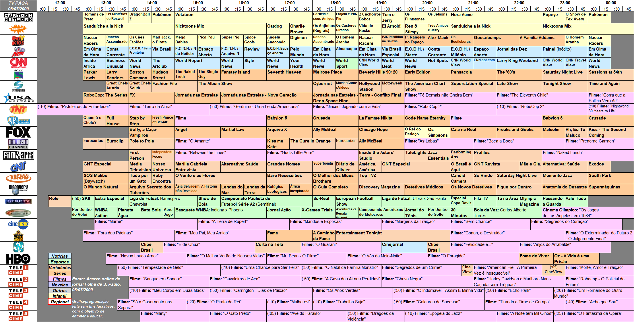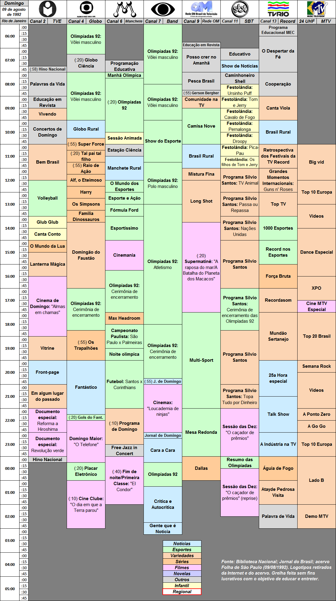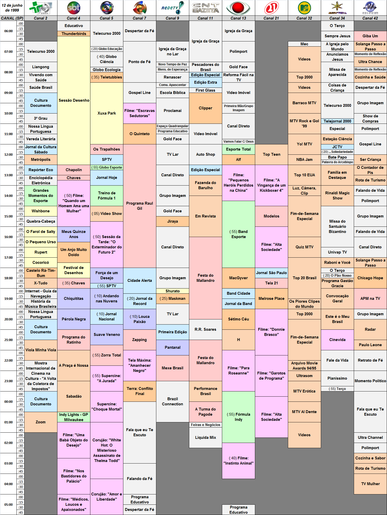 ***Jueves, 15 de marzo de 1990 (día de la inauguración del presidente Fernando Collor) - São Paulo, SP; Incluye canales de la novata televisión paga***