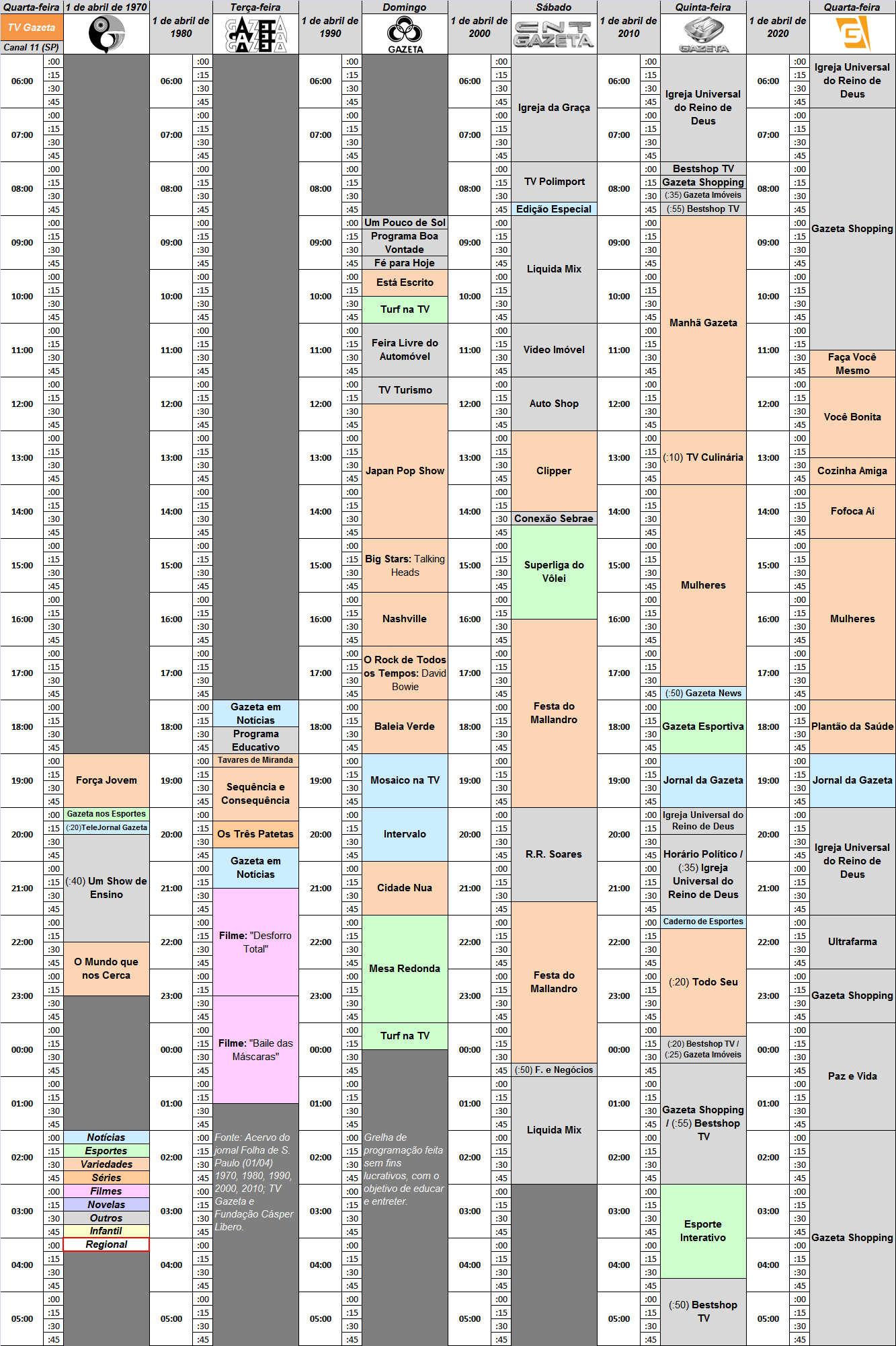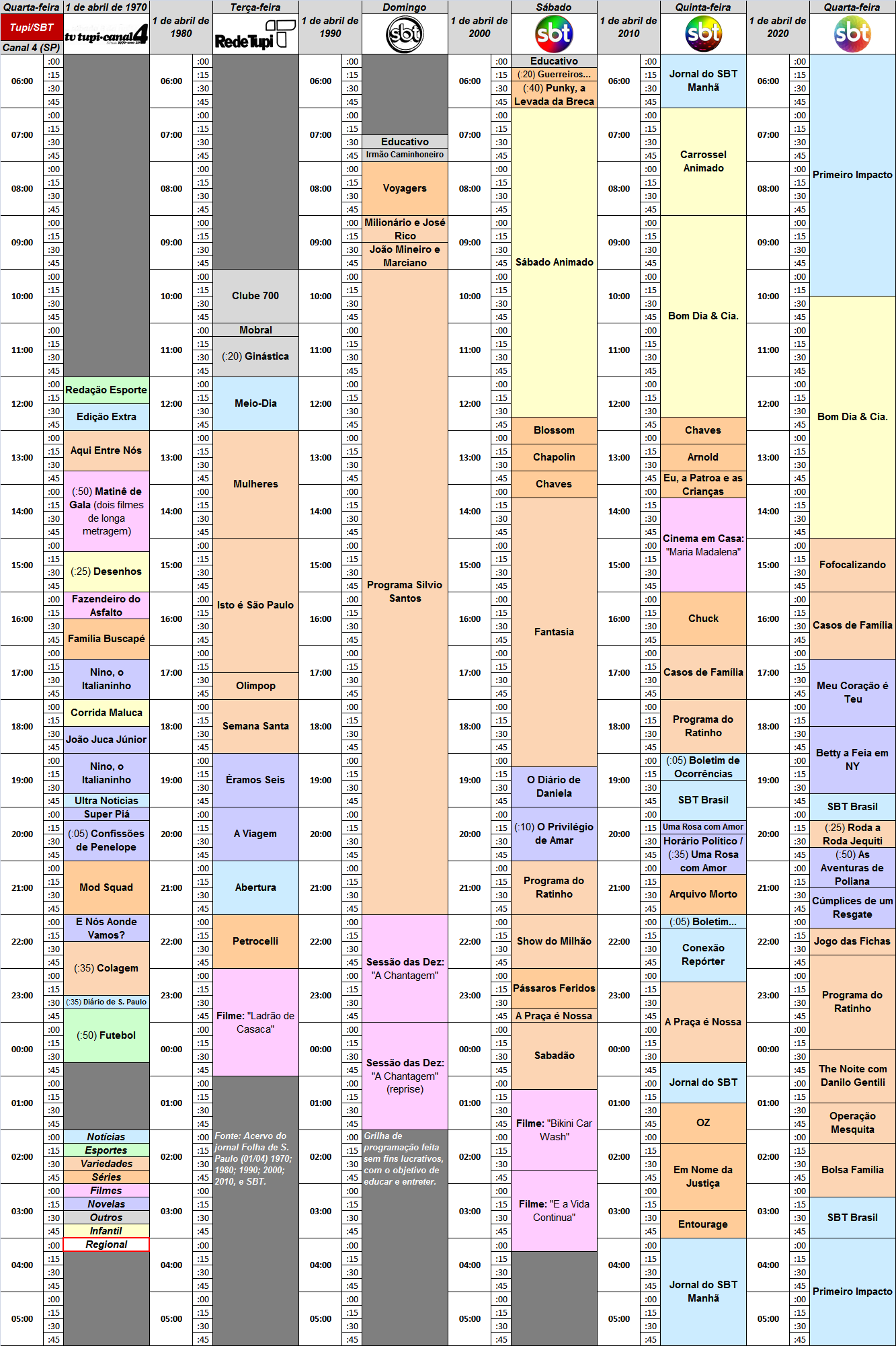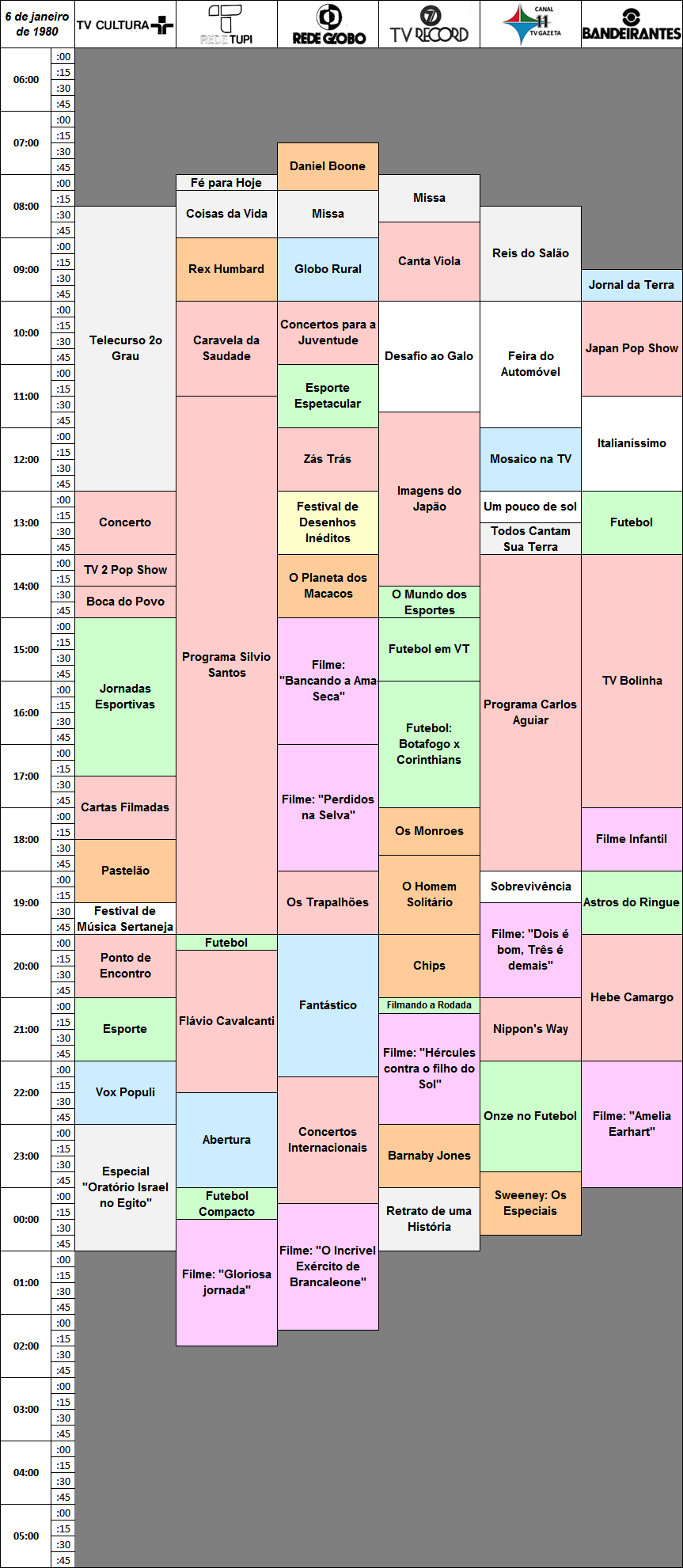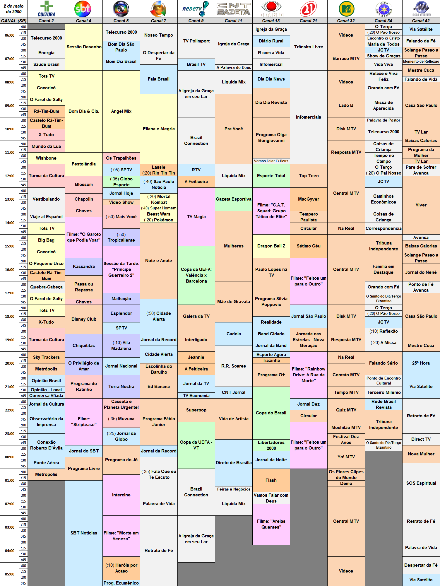 ***Jueves, 15 de marzo de 1990 (día de la inauguración del presidente Fernando Collor) - São Paulo, SP; Incluye canales de la novata televisión paga***