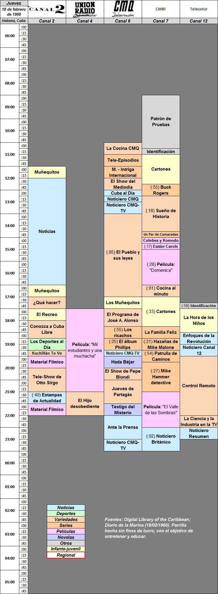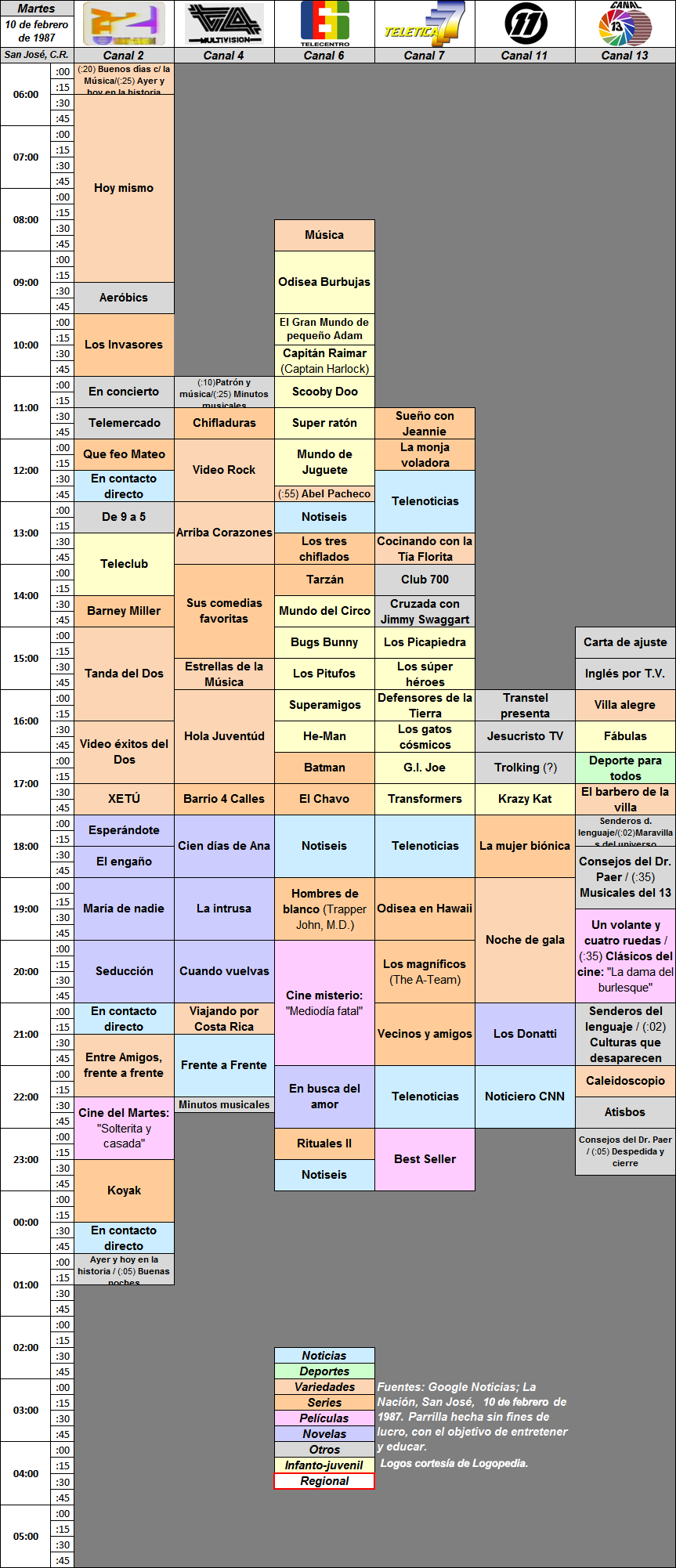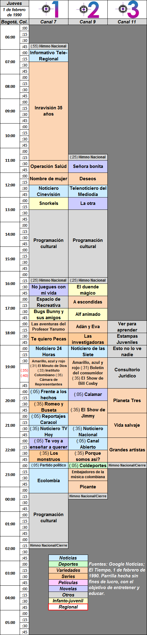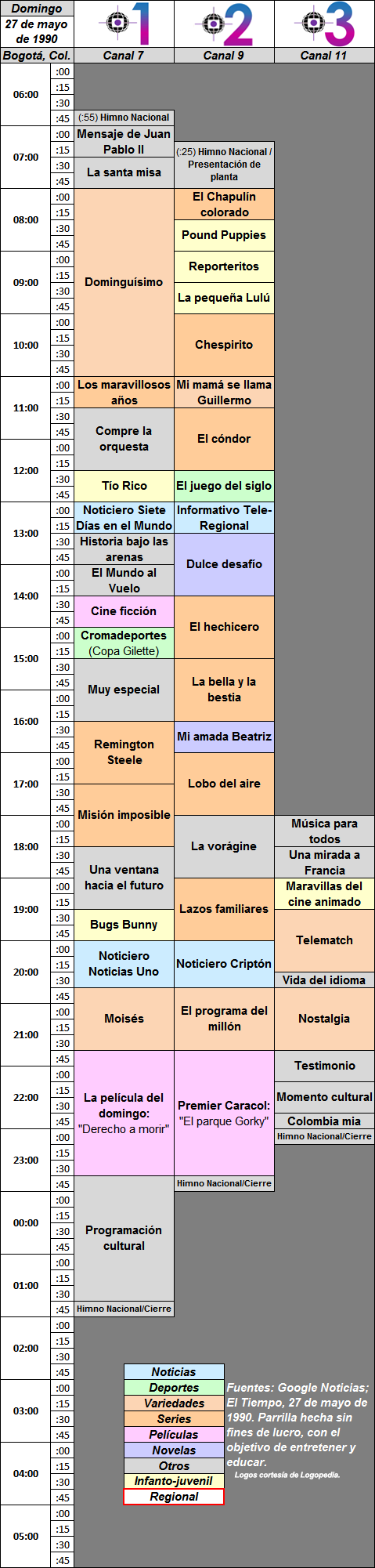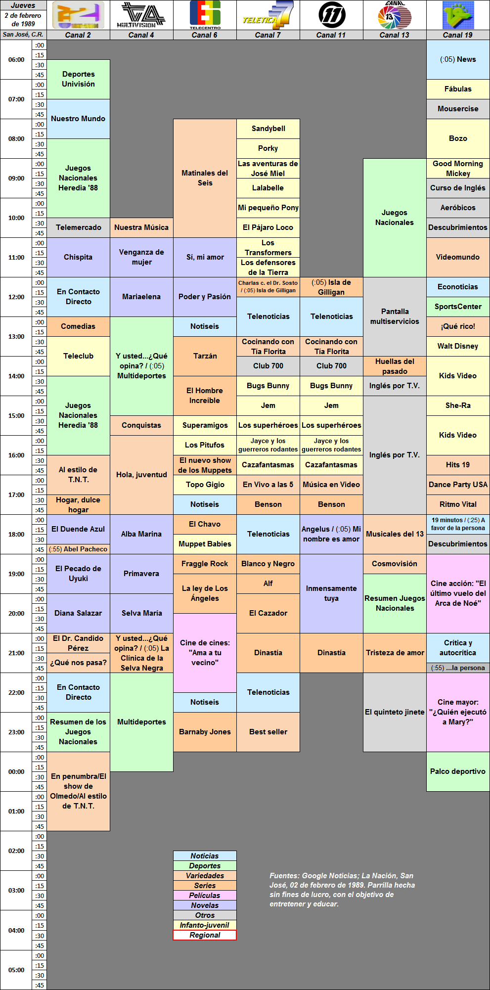 Aquí voy a poner algunas grillas de programaciones antiguas o nuevas, hechas por mi con información de periódicos, con sus devidos créditos.