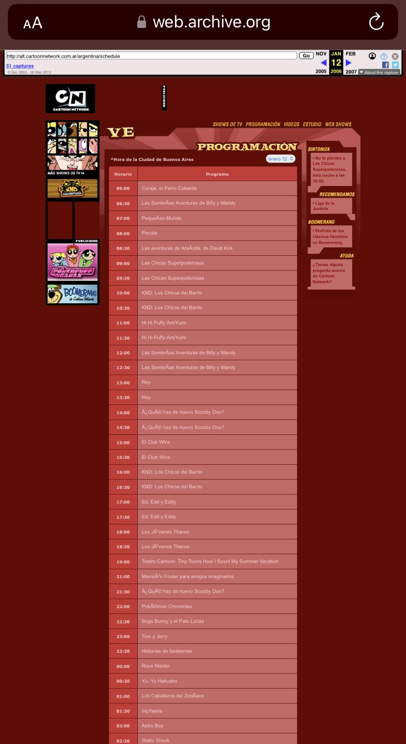 Extraído de Cartoon Network (.ar y .mx) a través de web.archive.org