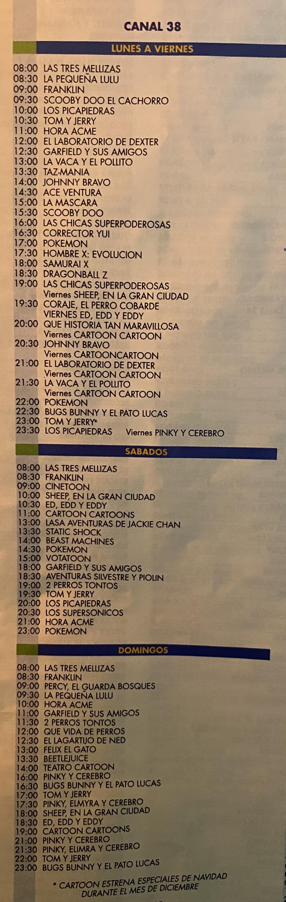 Adjunto foto de la programación de Cartoon Network de diciembre de 2001, según la revista de abonados de TVC.