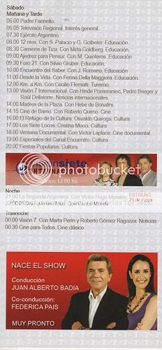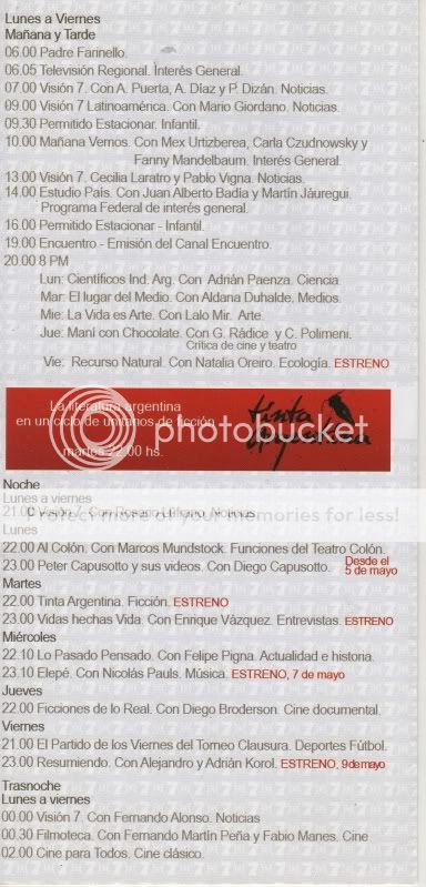 Programación extraida de un folleto entregado en el stand de Canal 7 y Radio Nacional en la Feria del Libro 2008