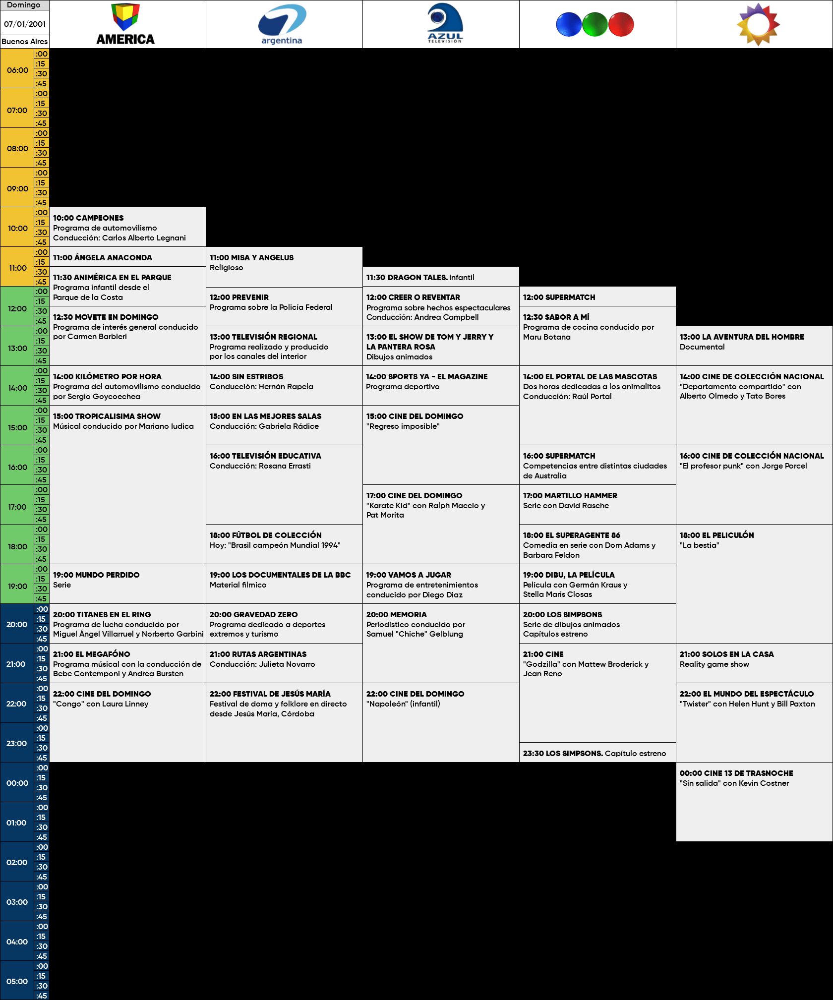 Programación TV Abierta Buenos Aires - Domingo 7 de Enero de 2001