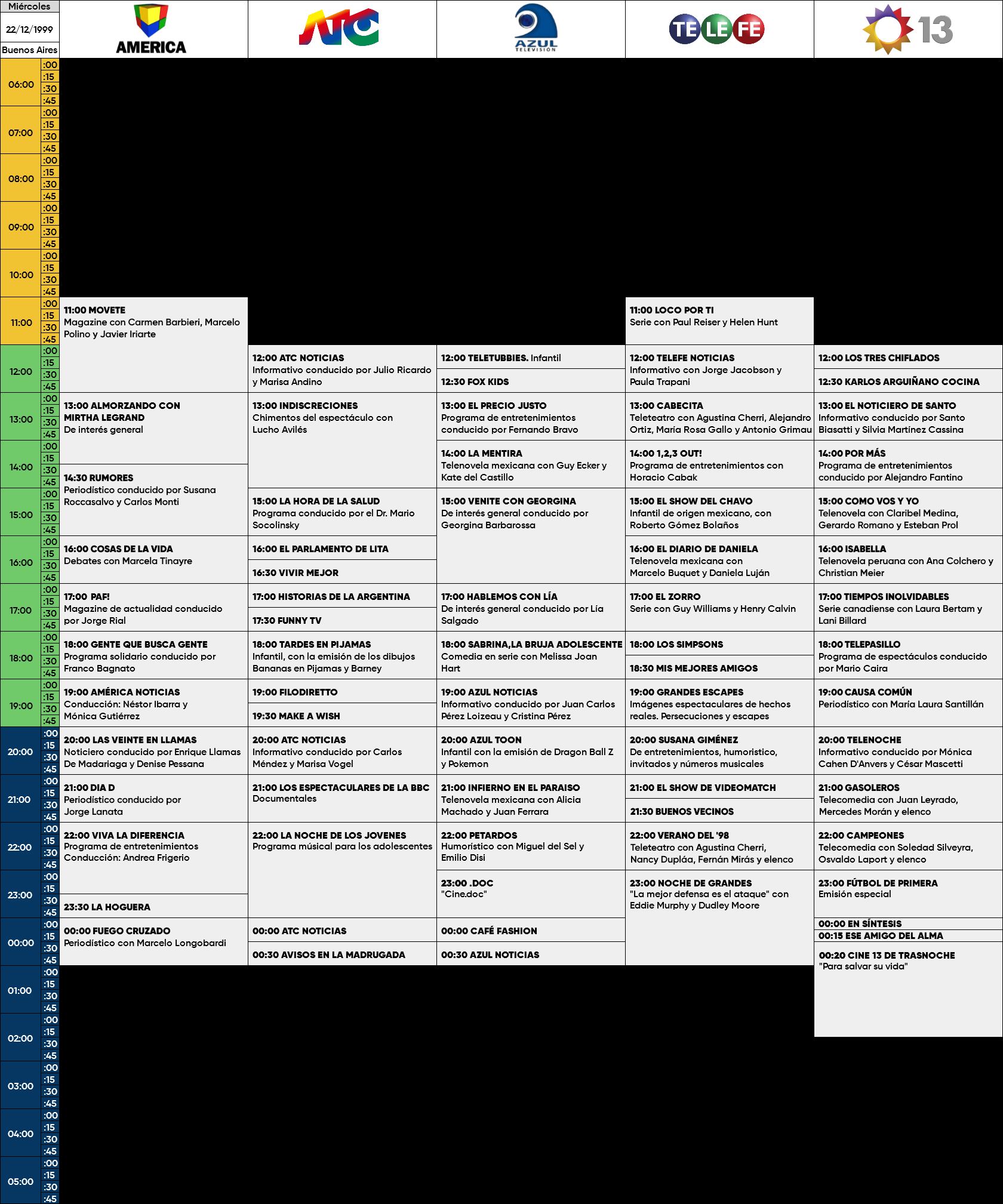 Programación TV Abierta Buenos Aires - Miércoles 22 de Diciembre de 1999