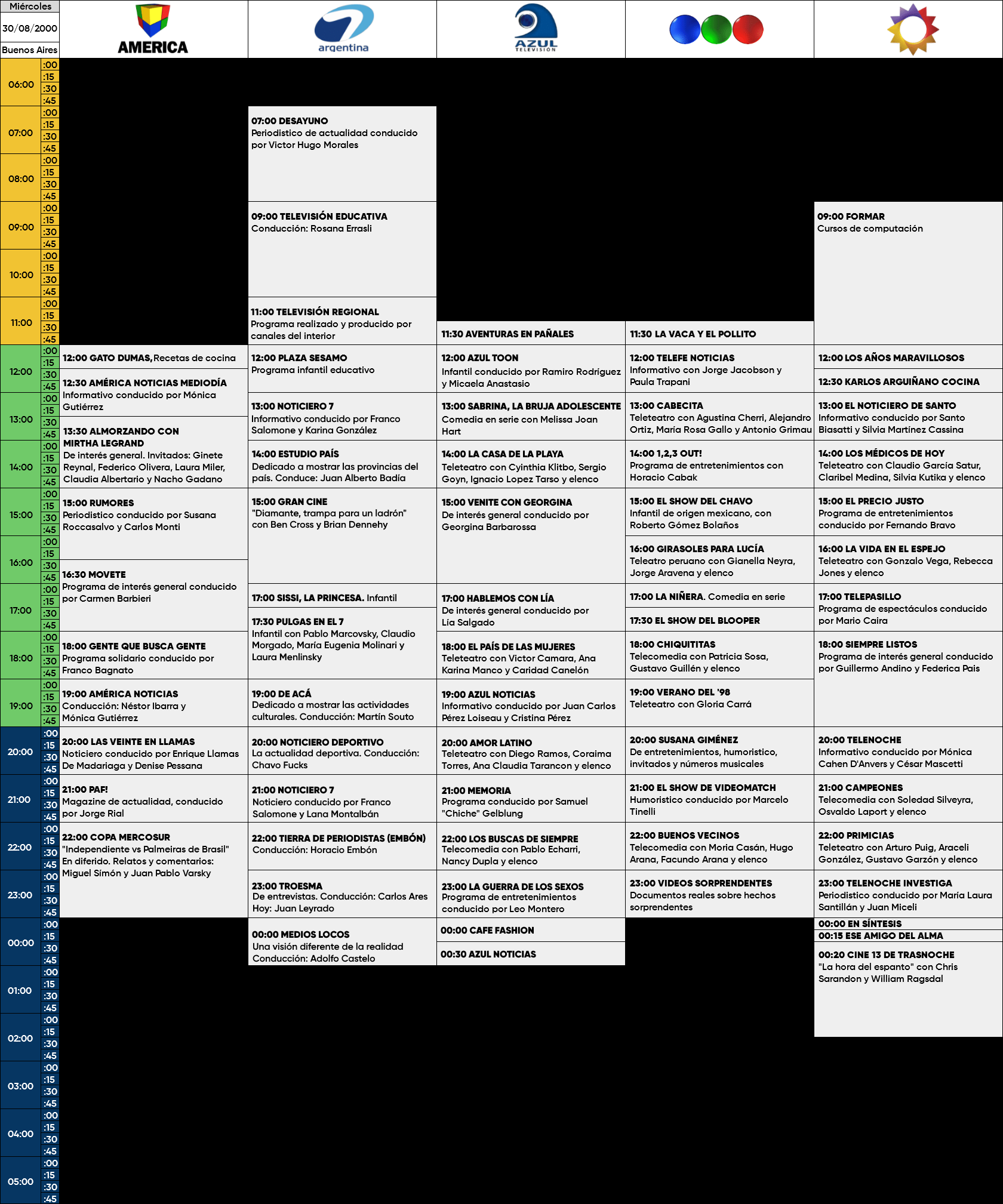 Programación TV Abierta Buenos Aires - Miércoles 30 de Agosto de 2000
