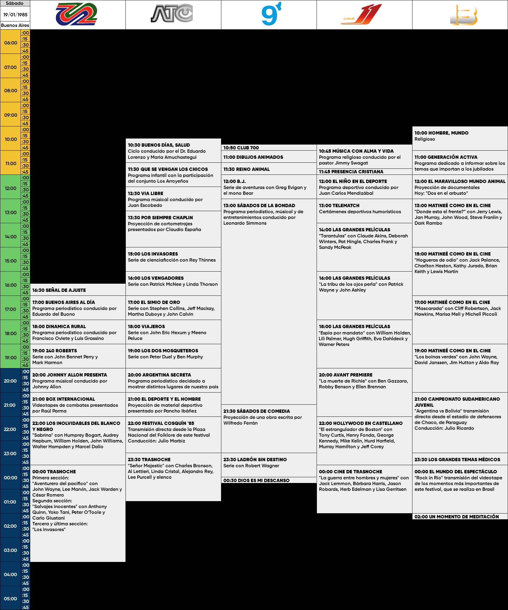 Programación TV Abierta Buenos Aires - Sábado 19 de Enero de 1985