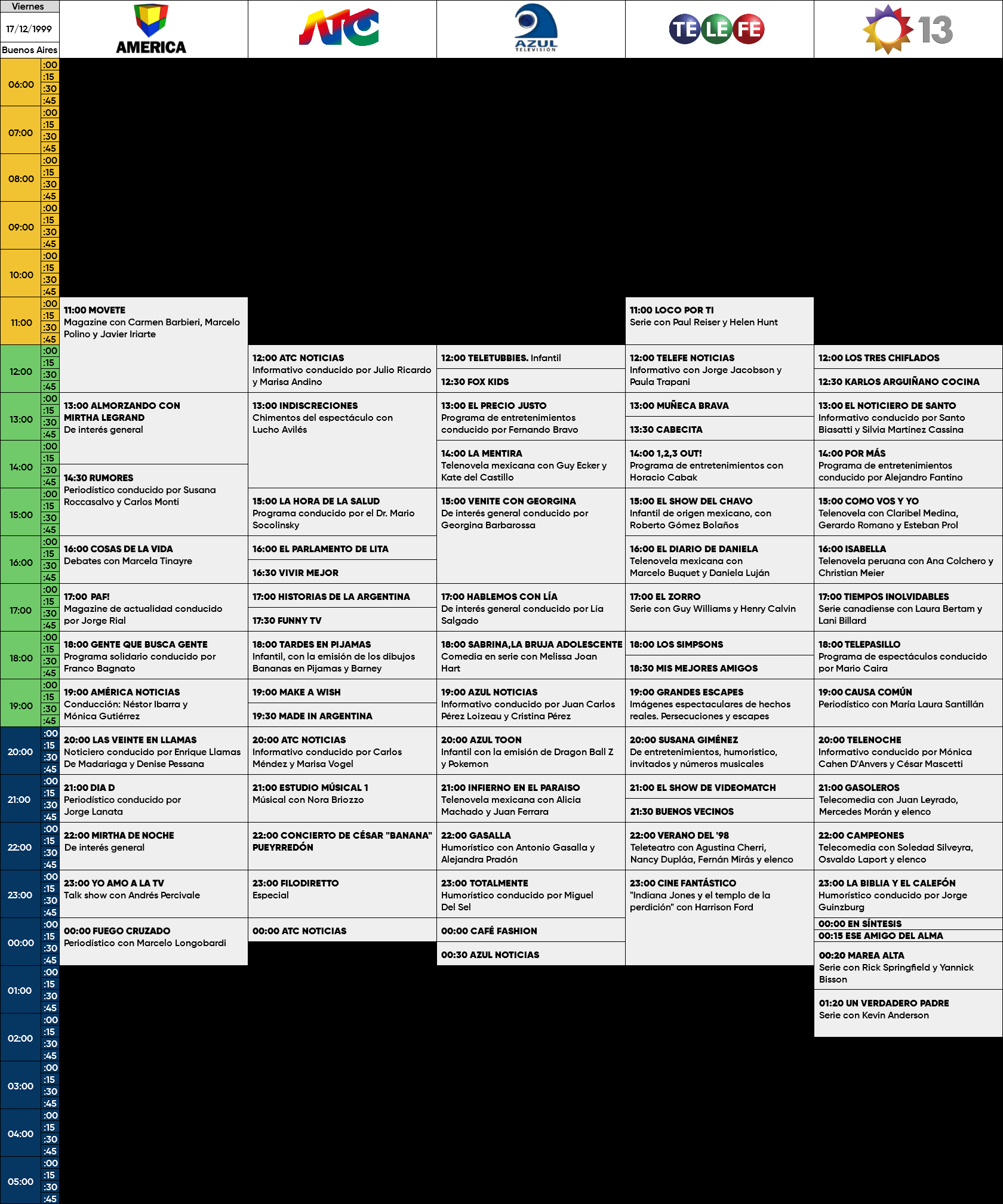 Programación TV Abierta Buenos Aires - Viernes 17 de Diciembre de 1999