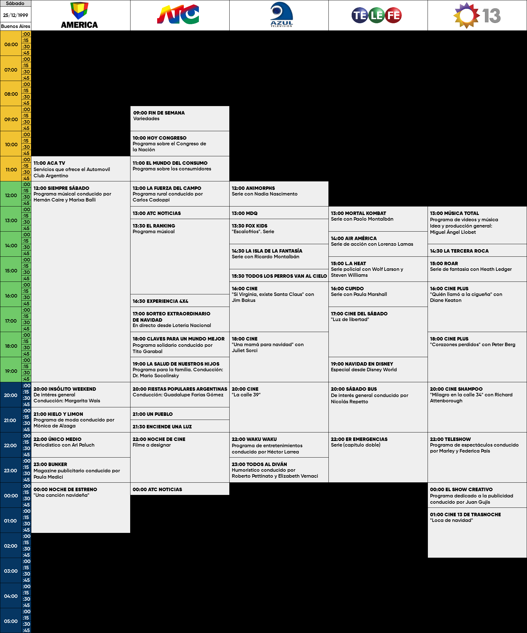Programación TV Abierta Buenos Aires - Viernes 24 y Sábado 25 de Diciembre de 1999