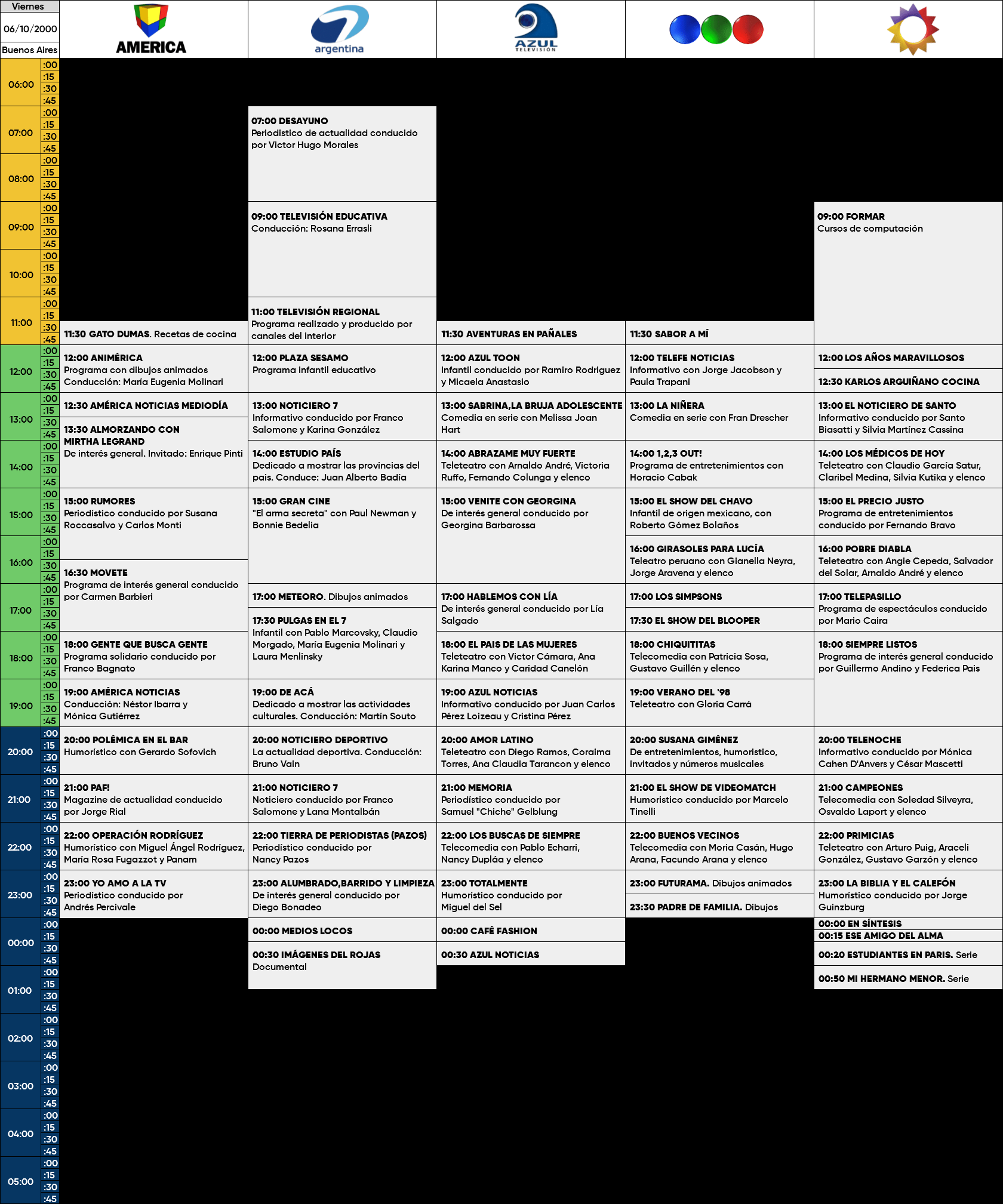 Un día como hoy hace 25 años se producía la renuncia del vicepresidente de la nación Carlos “Chacho” Álvarez y esta era la grilla de la TV aquel día.