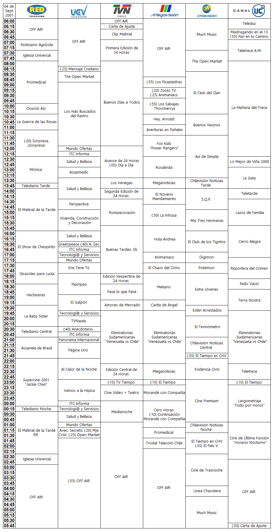 No se incluye la programación de ABT Canal 22 por parte del diario ni tampoco del Canal 2 ya que en ese momento se dedicaba a la programación de videoclips musicales en la primera parte del día desde las 09:00Hrs y el resto del canal evangélico “Vidavisión” hasta las 00:00Hrs.