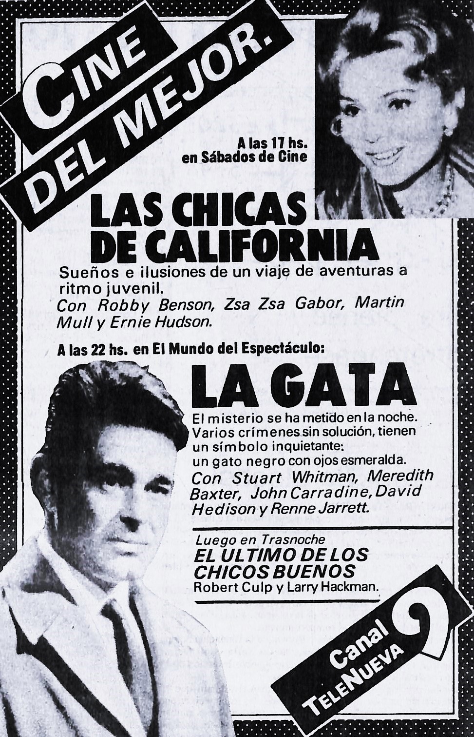 BONUS: un aviso con las distintas películas que TeleNueva (el canal 9 local) emitió en esa jornada.