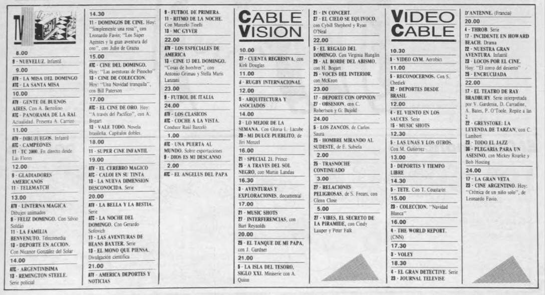 Programación TV Buenos Aires: Domingo 22 de diciembre de 1991