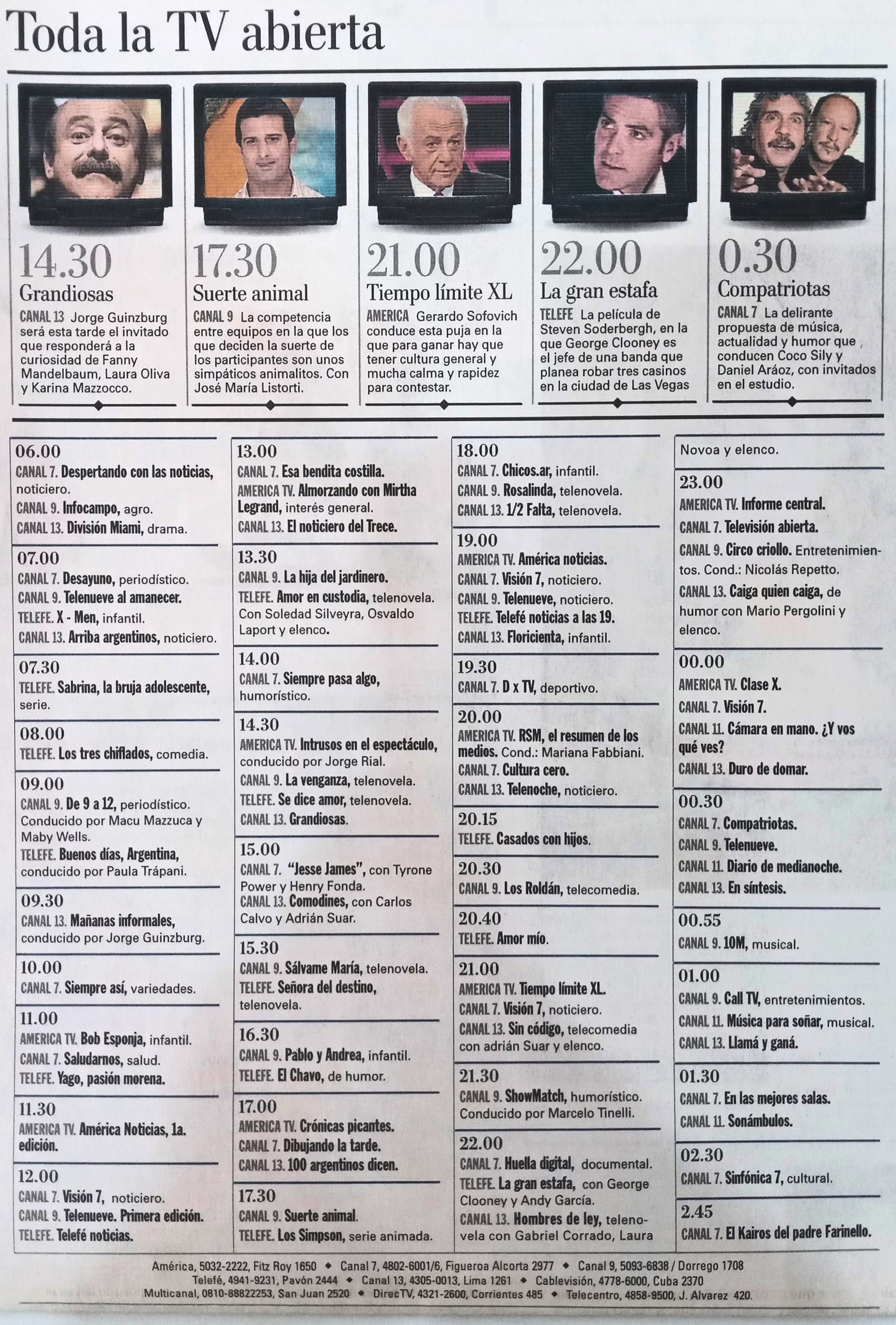 Programación TV Buenos Aires: Jueves 1° de diciembre de 2005