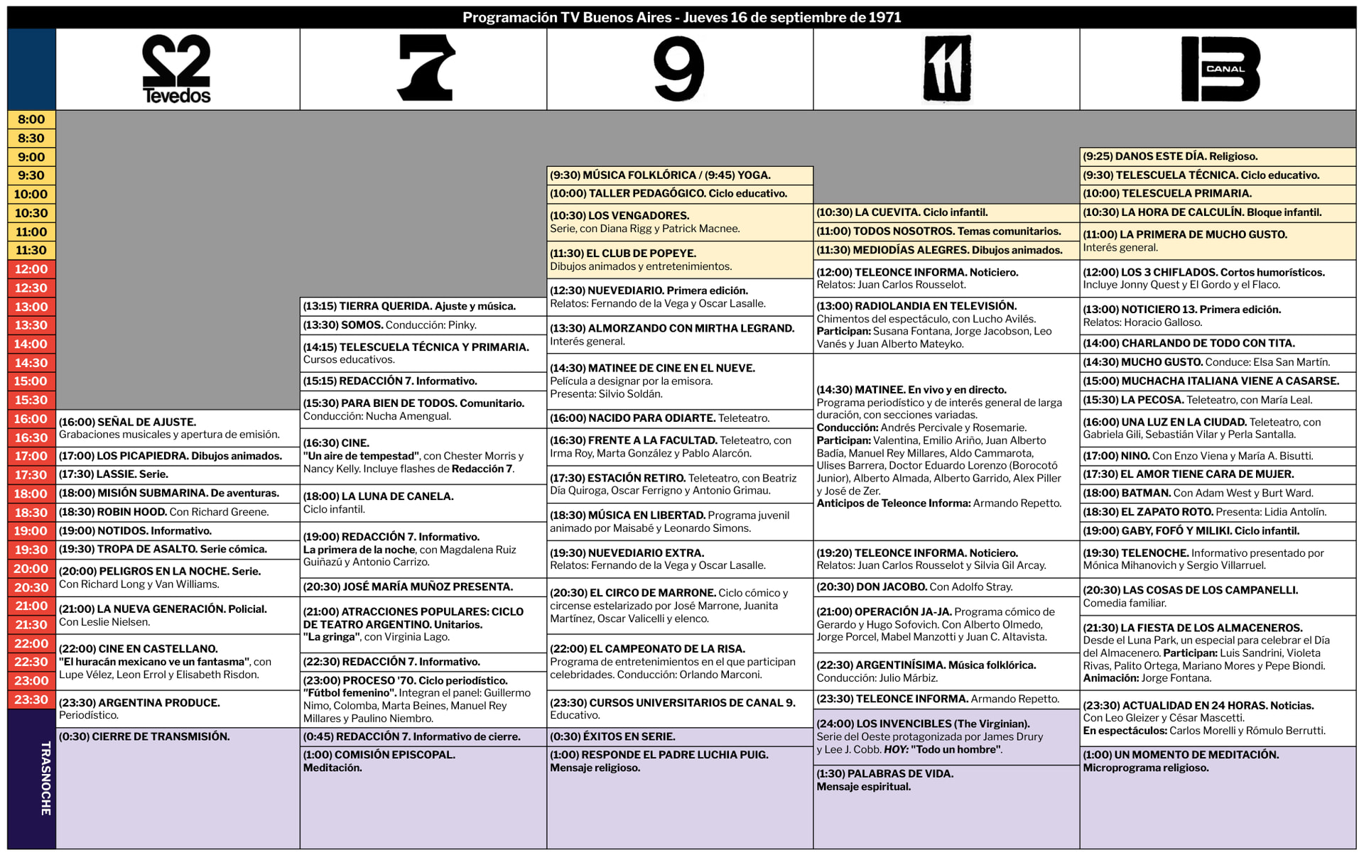 Programación TV Buenos Aires: Jueves 16 de septiembre de 1971