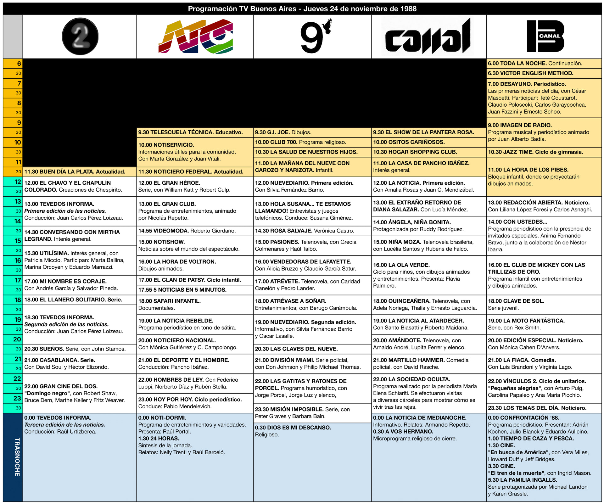 Programación TV Buenos Aires: Jueves 24 de noviembre de 1988