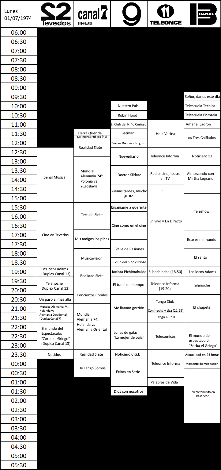 Programacion TV Buenos Aires: Lunes 1º de Julio del 1974